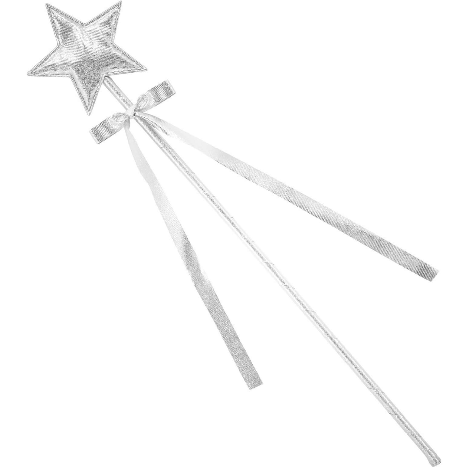 Elfe Fee Zauberstab Zepter Feenstab mit Bändern in Sternform metallic silber
