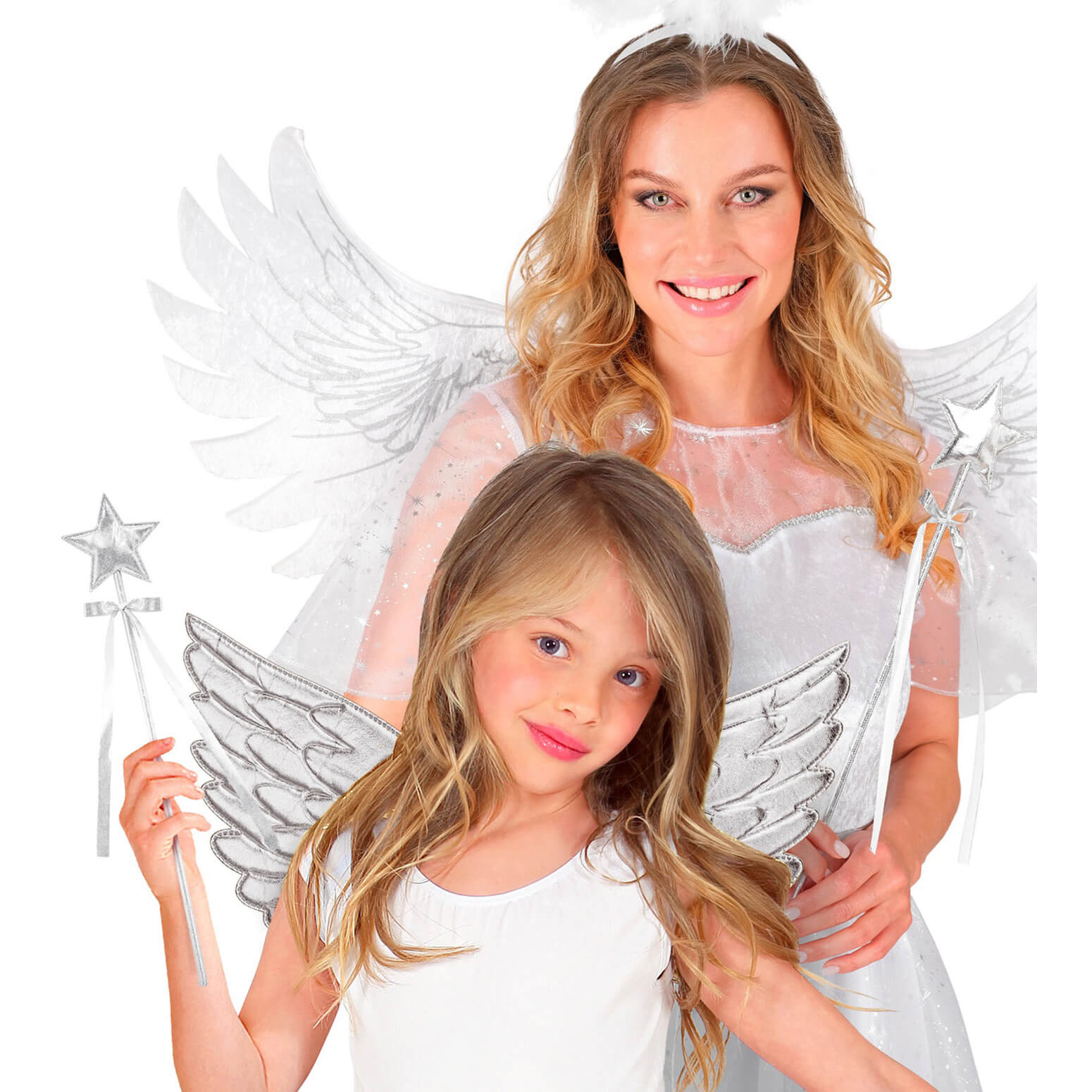Elfe Fee Zauberstab Zepter Feenstab mit Bändern in Sternform metallic silber – (ARTIKEL/REFERNZ: 8003558210787/WI21078 – Kategorie/Suche: – Hersteller: Widmann S.r.l.)