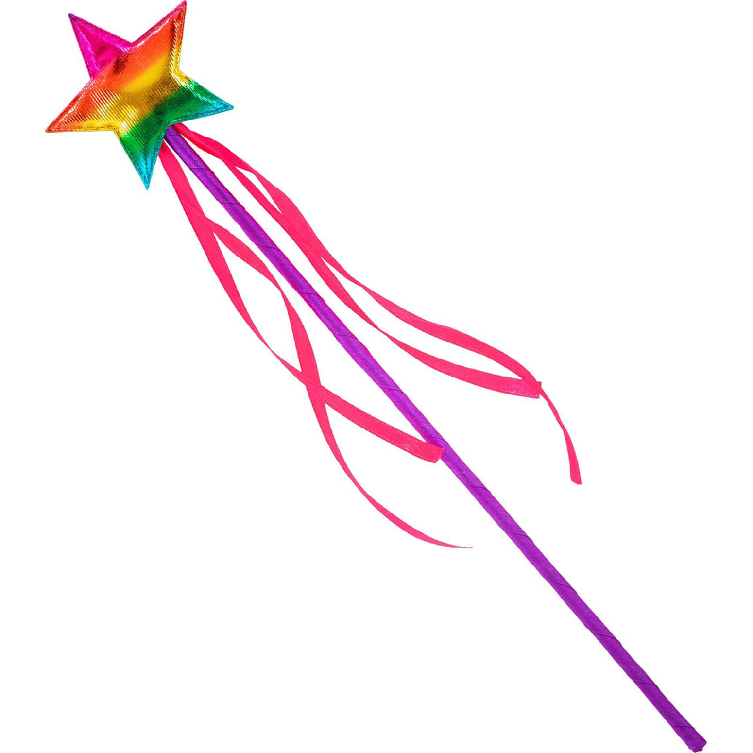 Elfe Fee Zauberstab Zepter Feenstab mit Bändern in Sternform metallic regenbogen