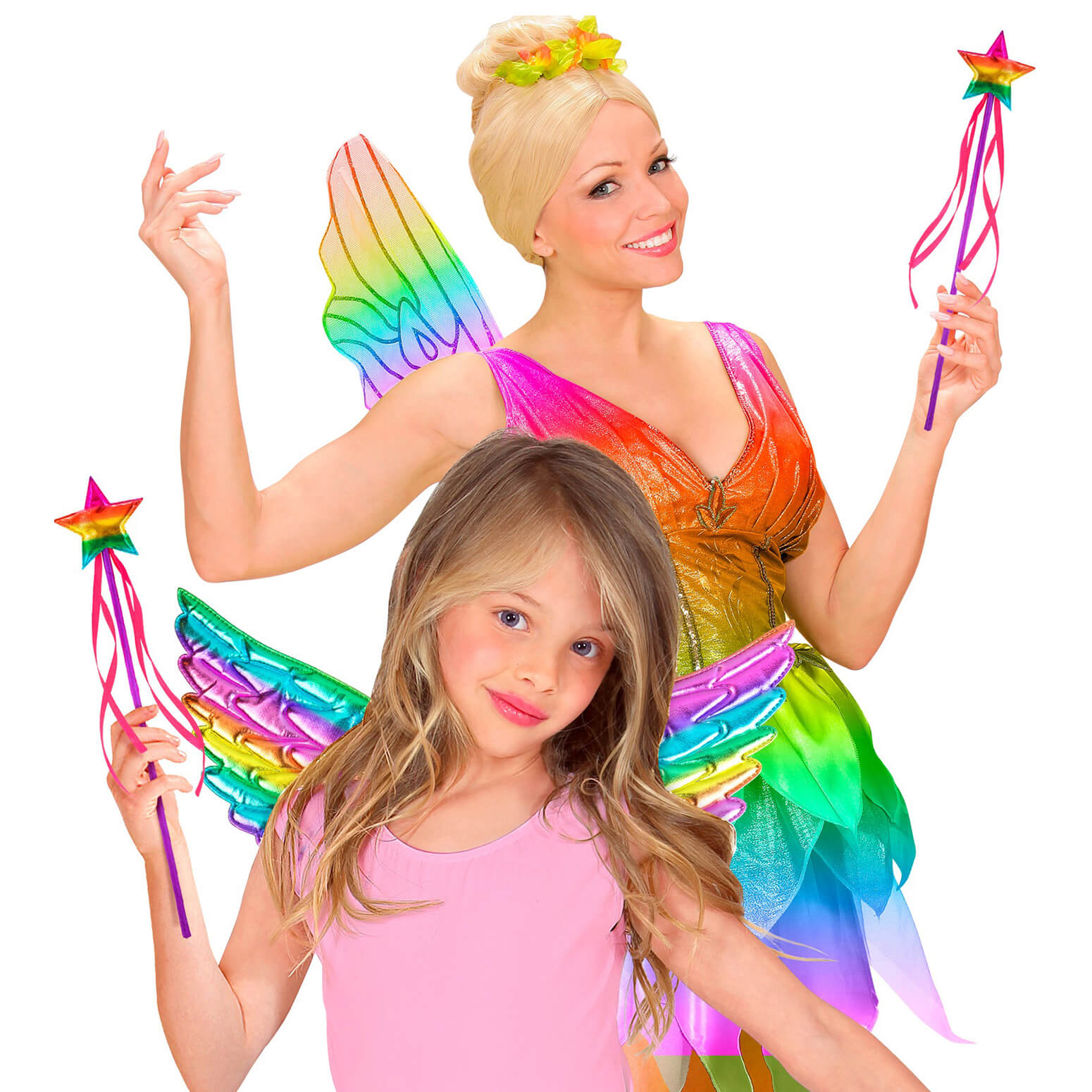 Elfe Fee Zauberstab Zepter Feenstab mit Bändern in Sternform metallic regenbogen – (ARTIKEL/REFERNZ: 8003558210794/WI21079 – Kategorie/Suche: – Hersteller: Widmann S.r.l.)
