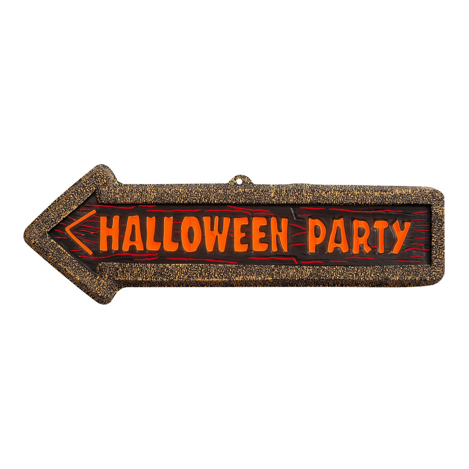 Halloween Deko Wandbild 3D-Folie Hinweisschild in Pfeilform 56x17cm HALLOWEEN PARTY neonorange-braun