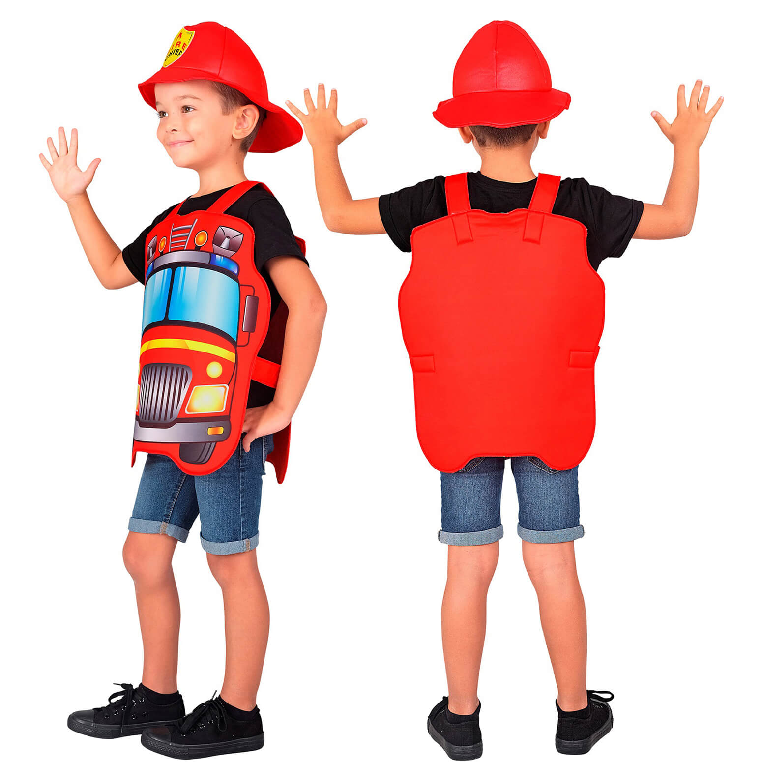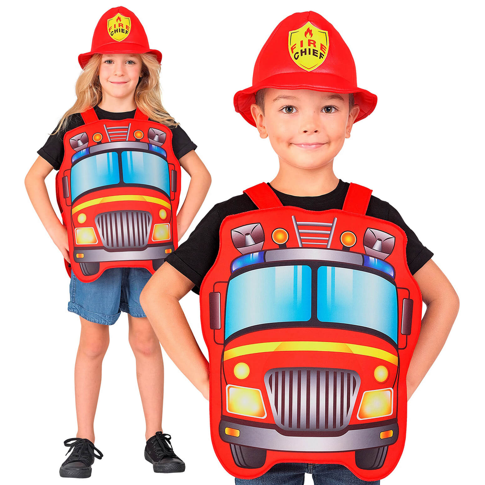 Feuerwehr Kinderkostüm Tunika kurz Feuewehrmann oder Feuerwehrauto Fire Chief Firefighter rot-gelb