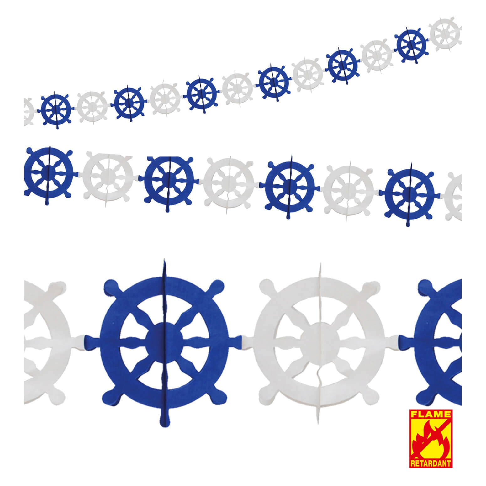 Steuerrad Dekogirlande aus Papier schwer entflammbar 300cm blau-weiß