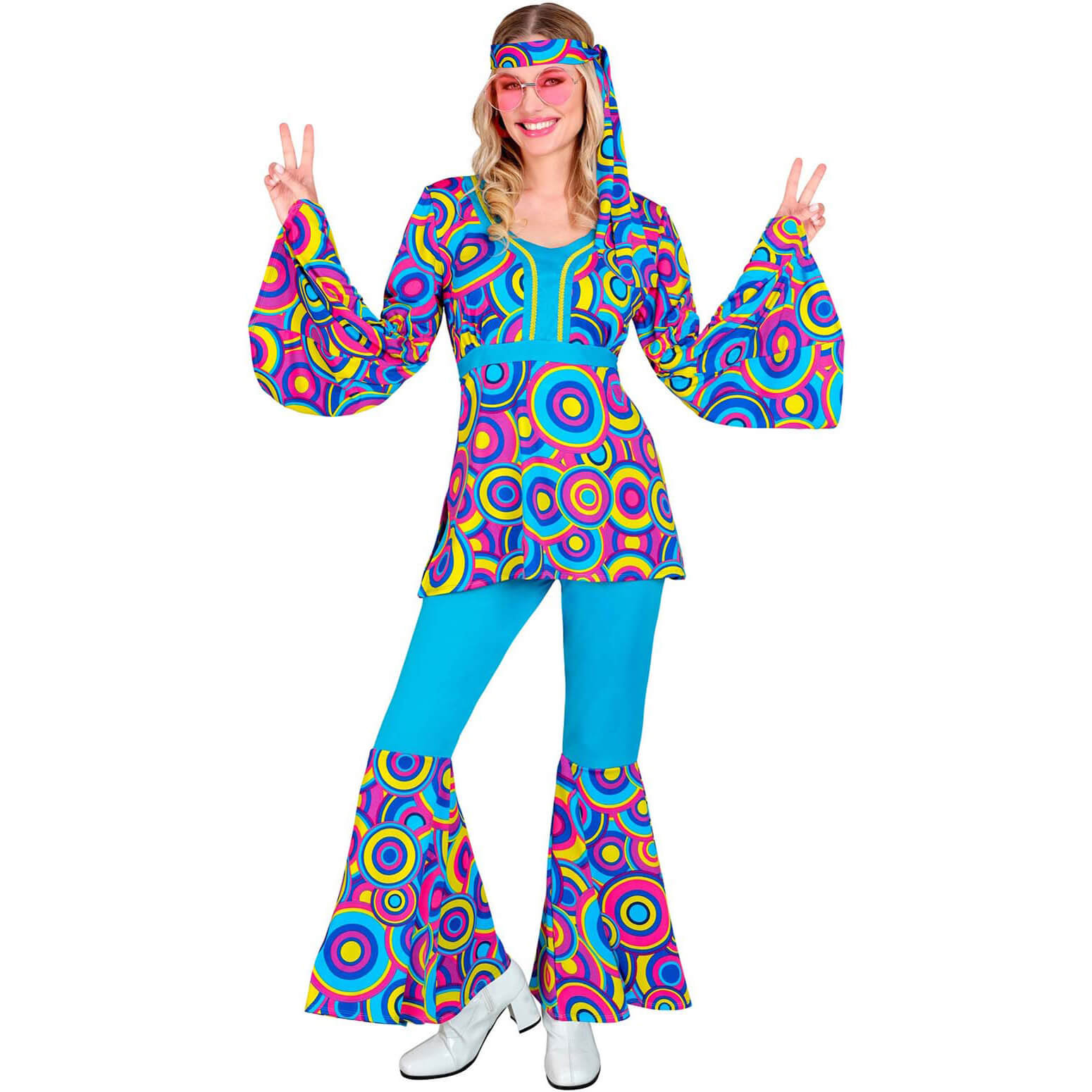 70er Jahre Hippiegirl Kostüm Anzug Motiv Groovy Circle Doodles blau-bunt – (ARTIKEL/REFERNZ: 8003558218219/WI21821-8003558218233/WI21823 – Kategorie/Suche: – Hersteller: Widmann S.r.l.)