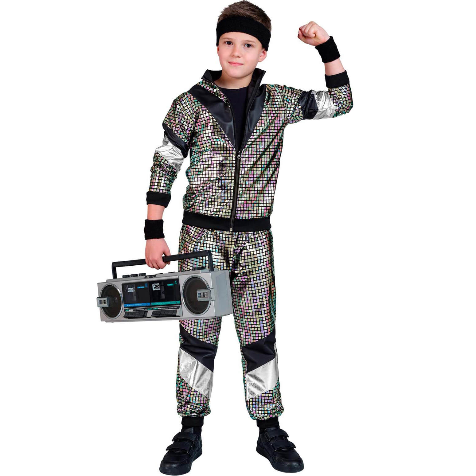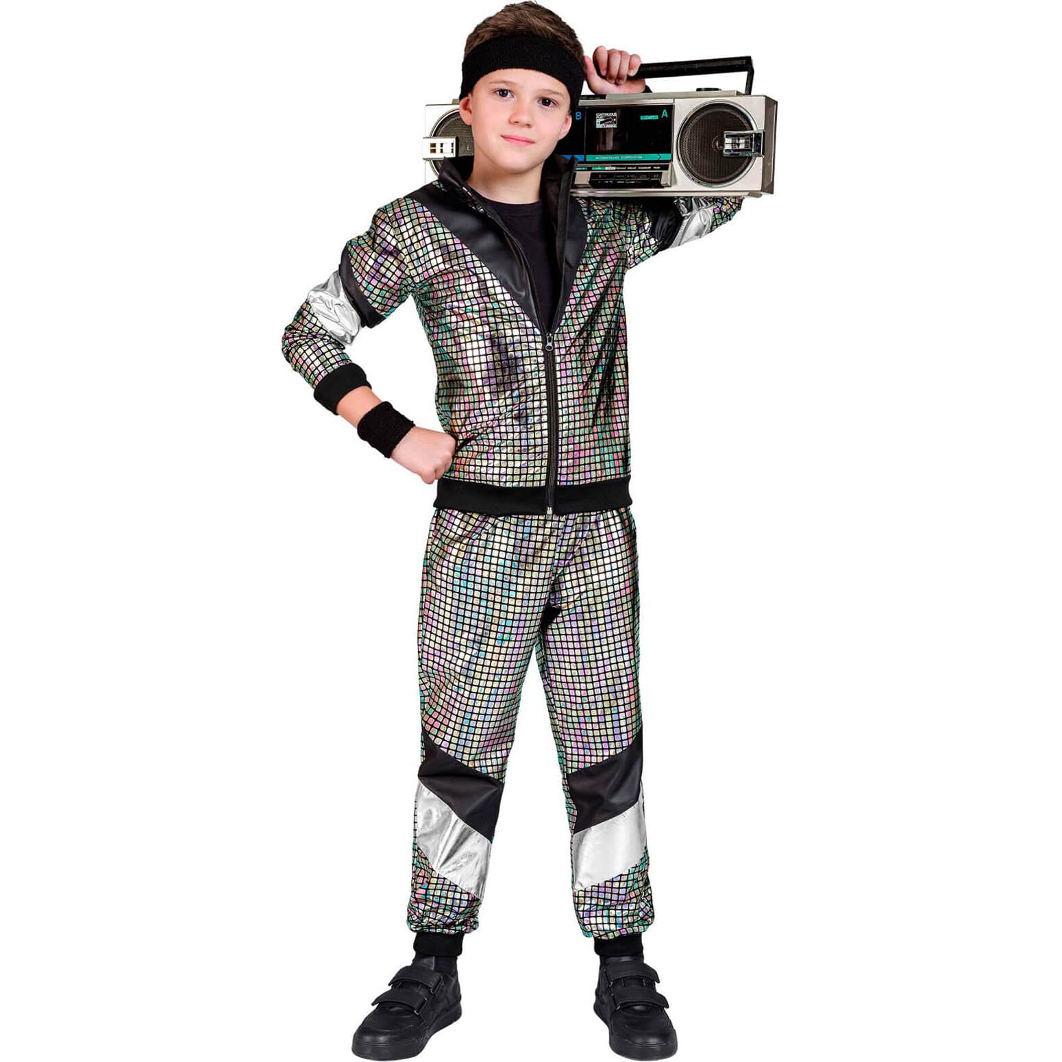 80er Jahre Jogginganzug Kinderkostüm Anzug mit holografischem Effekt schwarz-silber – (ARTIKEL/REFERNZ: 8003558218752/WI21875-8003558218769/WI21876-8003558218776/WI21877-8003558218783/WI21878-8003558218790/WI21879 – Kategorie/Suche: Trainingsanzug – Hersteller: Widmann S.r.l.)