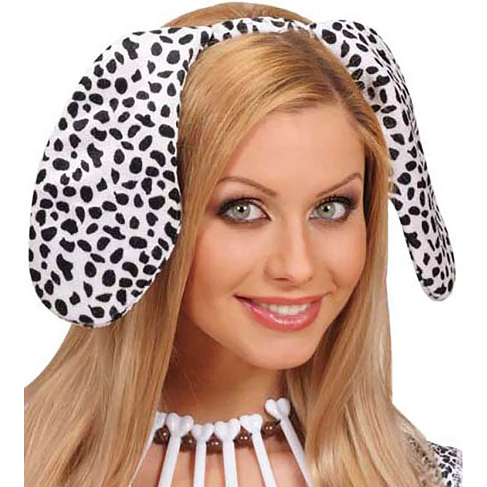 Hund Dalmatiner Haarreif mit Ohren aus Samt mit Punkten schwarz-weiß