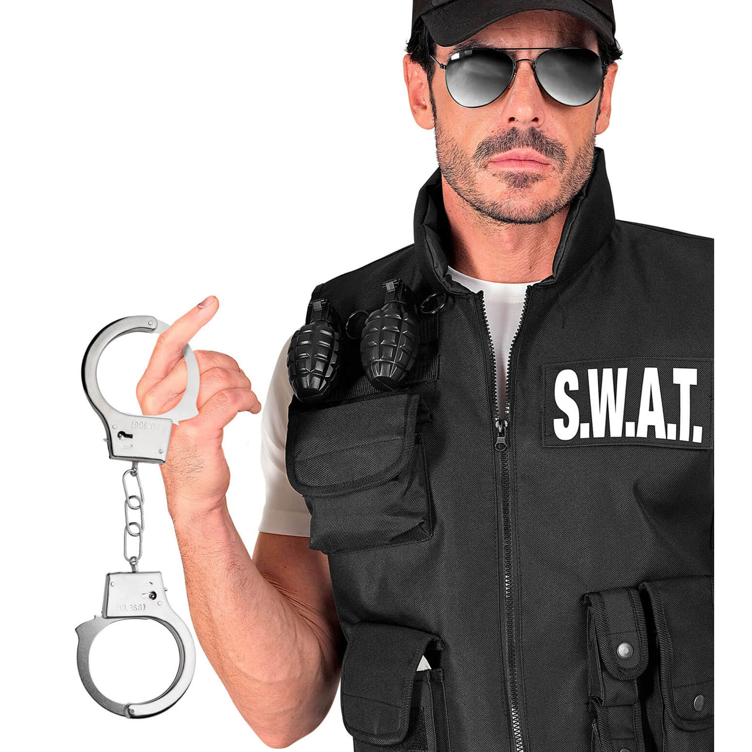 Polizei Sträfling/Rocker Handschellen Classic mit Schlüssel silber – (ARTIKEL/REFERNZ: 8003558241309/WI2413D – Kategorie/Suche: Polizistin Polizei Police – Hersteller: Widmann S.r.l.)