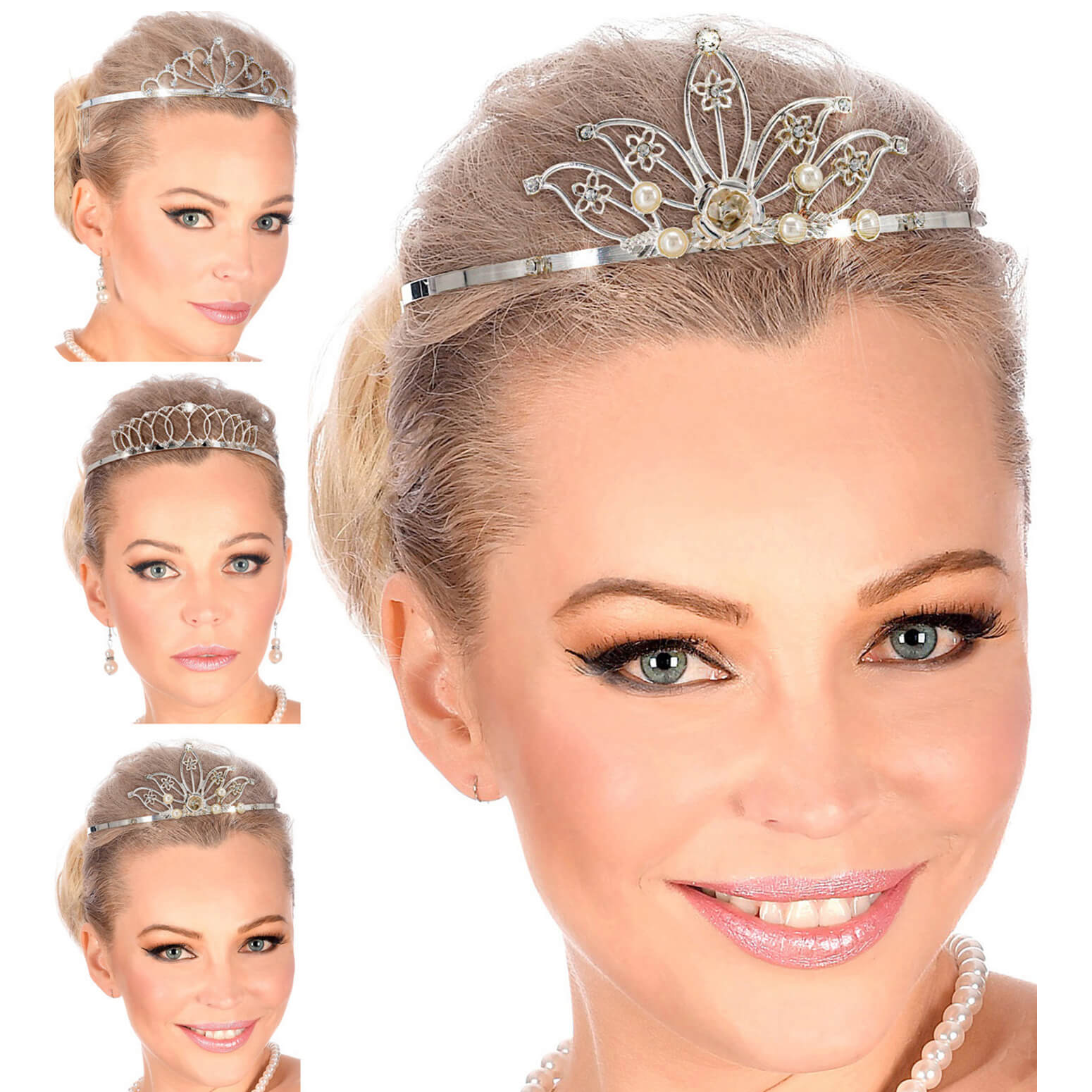 Prinzessin Edeldame Krone Diadem aus Metall mit Swarovski Steinen verschiedene Formen silber