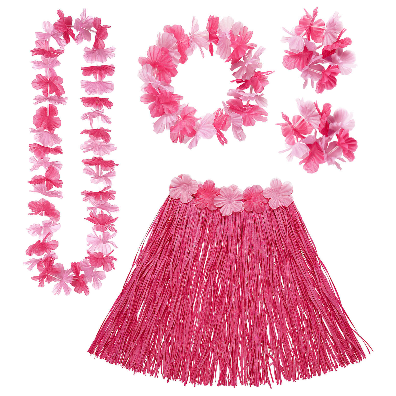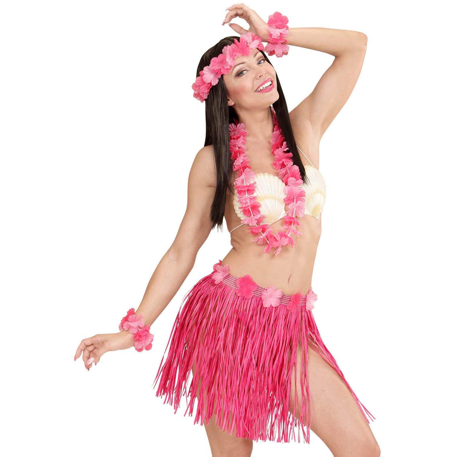 Hawaii/Afrika Dschungel Rock Bastrock kurz mit Blumen Hawaiikette Lei Armbändern und Haarkranz pink – (ARTIKEL/REFERNZ: 8003558245642/WI24564 – Kategorie/Suche: – Hersteller: Widmann S.r.l.)