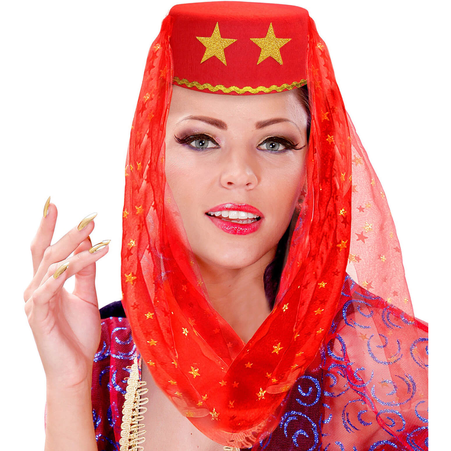 Orientalin/bezaubernde Jeannie Hut mit Schleier Kinnschleier und Sternen Haremshut rot-gold – (ARTIKEL/REFERNZ: 8003558250127/WI25012 – Kategorie/Suche: – Hersteller: Widmann S.r.l.)
