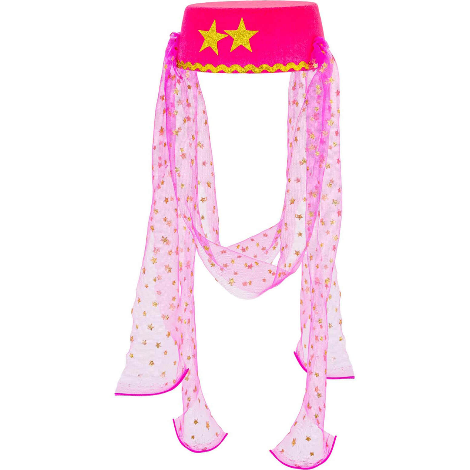 Orientalin / bezaubernde Jeannie Hut mit Schleier Kinnschleier und Sternen Haremshut pink-gold