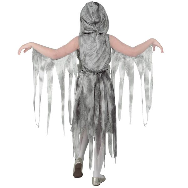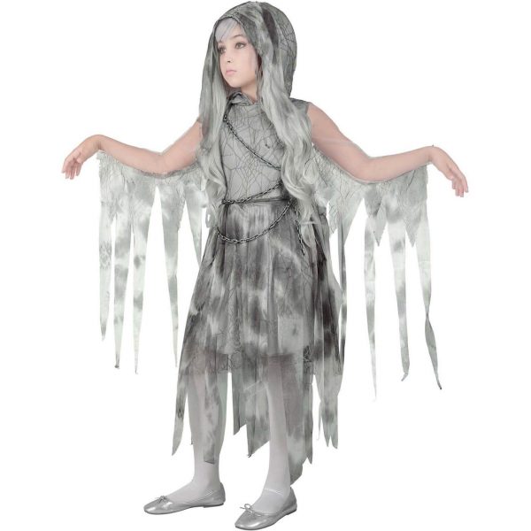 Zombie Braut Kinderkostüm Kleid halblang mit Spinnweben und Ketten Ghostly Spirit grau