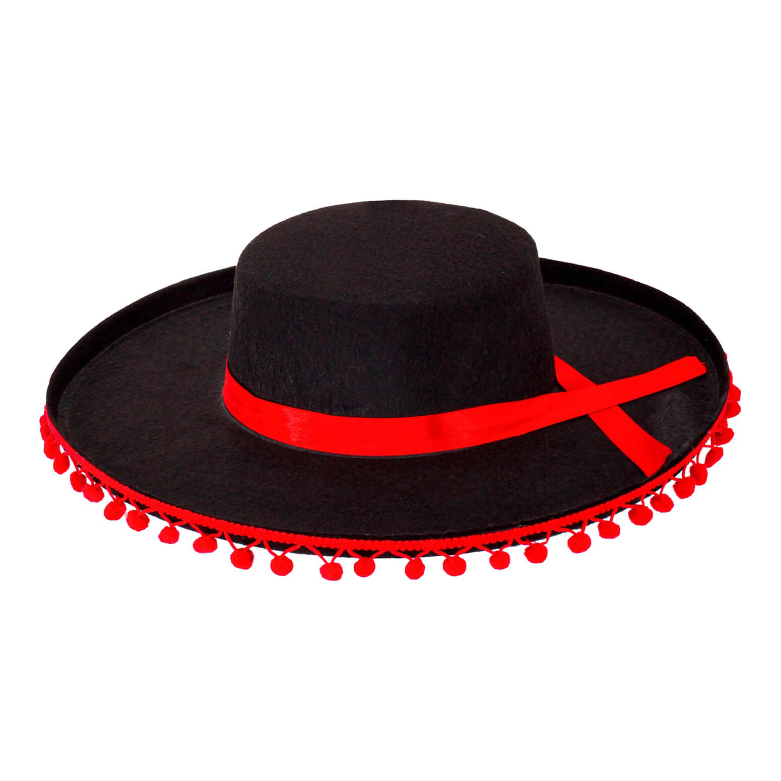 Spanier Flamencotänzer Hut mit kleinen Hängebommeln schwarz-rot
