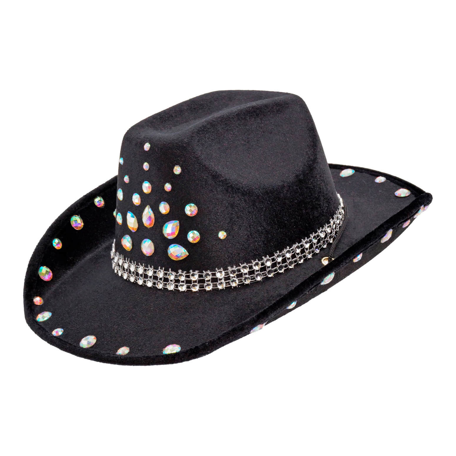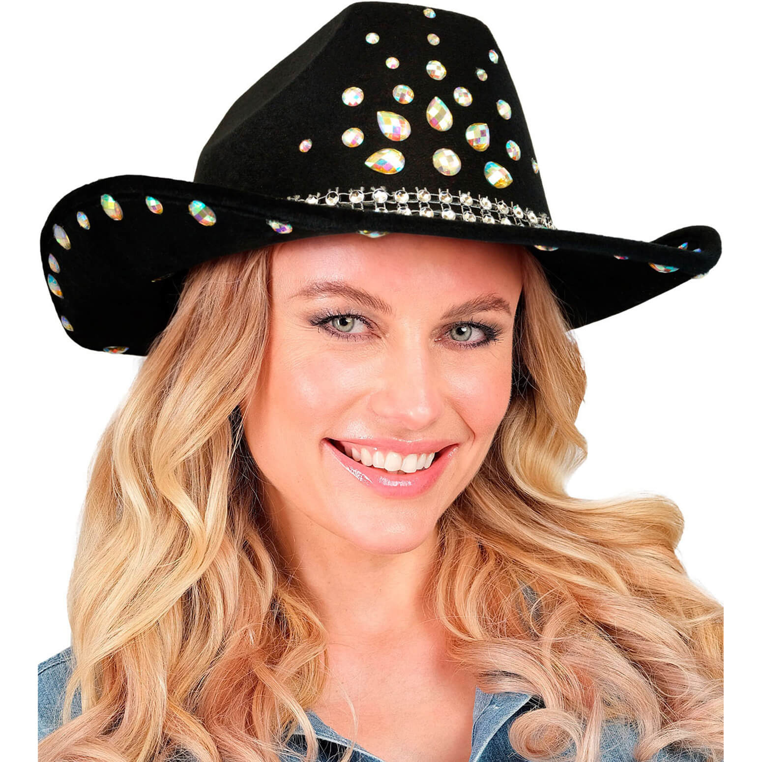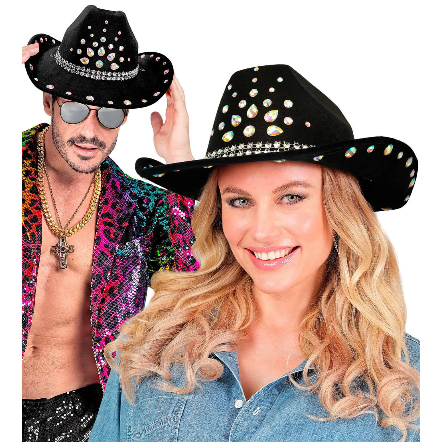 Cowgirl Cowboy/Festival Cowboyhut mit großen Strassoptik Diamanten schwarz-silber – (ARTIKEL/REFERNZ: 8003558256976/WI25697 – Kategorie/Suche: – Hersteller: Widmann S.r.l.)