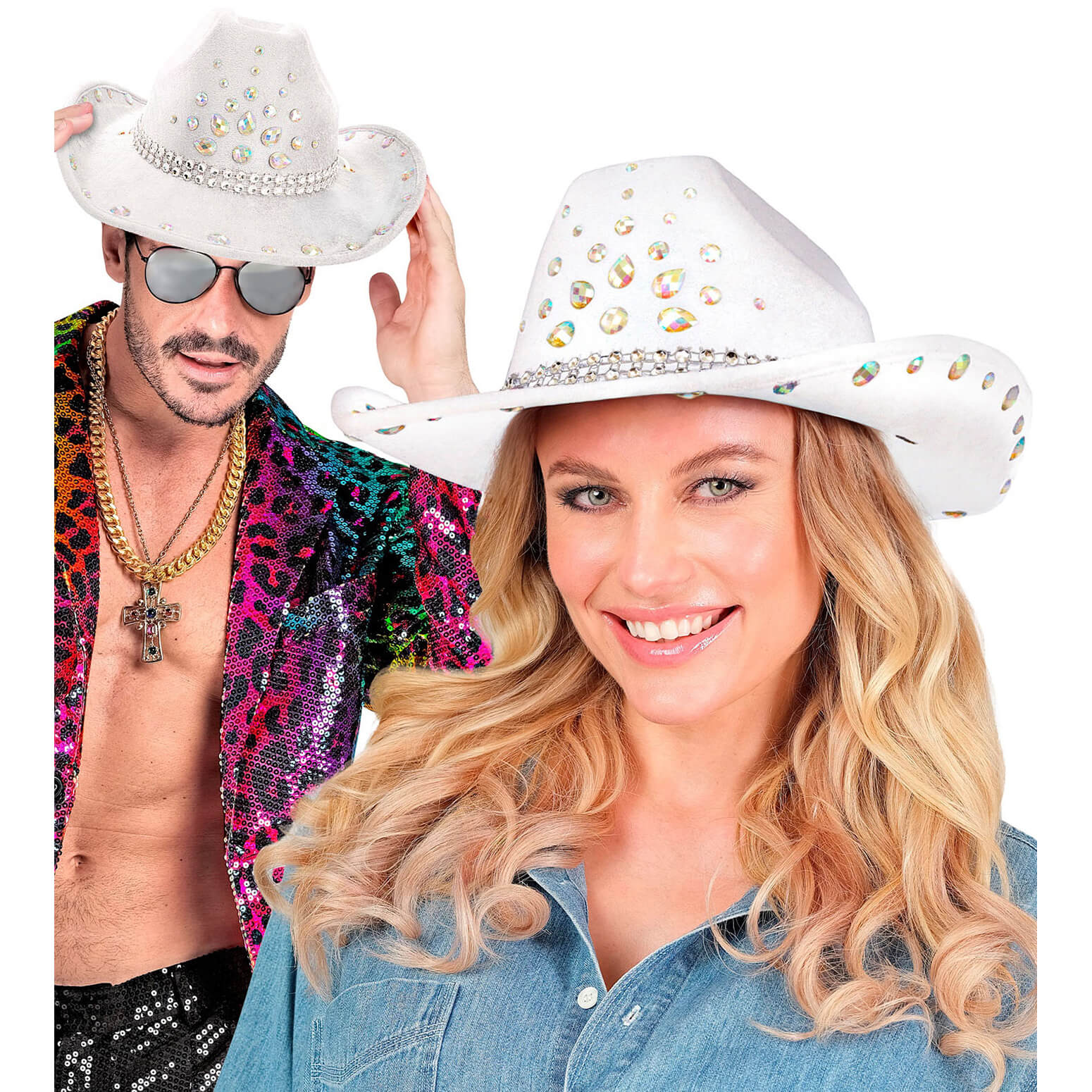 Cowgirl Cowboy/Festival Cowboyhut mit großen Strassoptik Diamanten weiß-silber – (ARTIKEL/REFERNZ: 8003558256990/WI25699 – Kategorie/Suche: – Hersteller: Widmann S.r.l.)