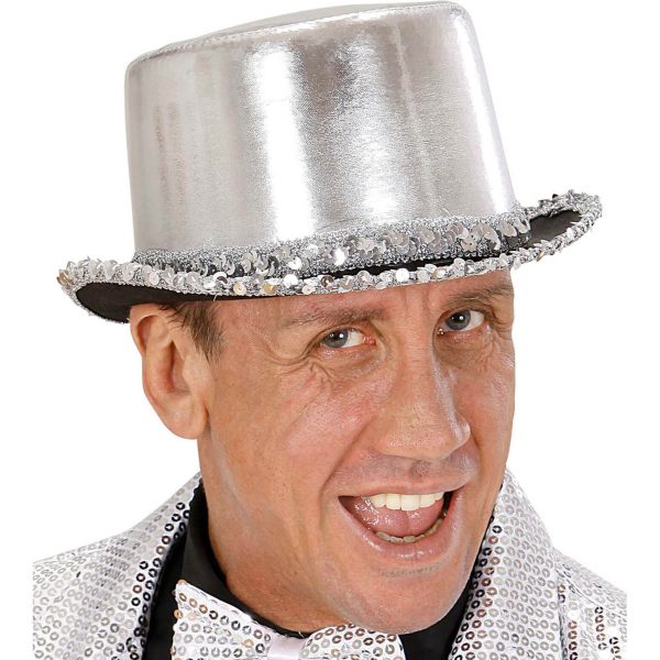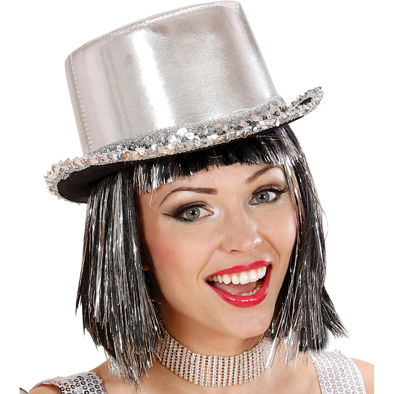 Show/Saloon Zylinderhut metallic mit Paillette Lamee silber silber – (ARTIKEL/REFERNZ: 8003558258703/WI2587A – Kategorie/Suche: – Hersteller: Widmann S.r.l.)