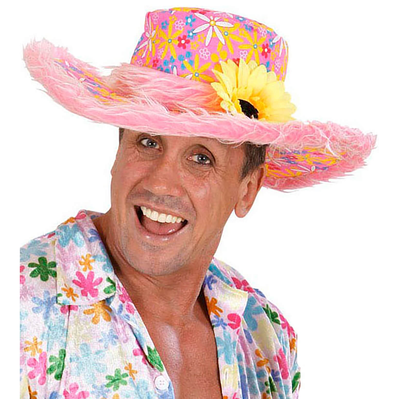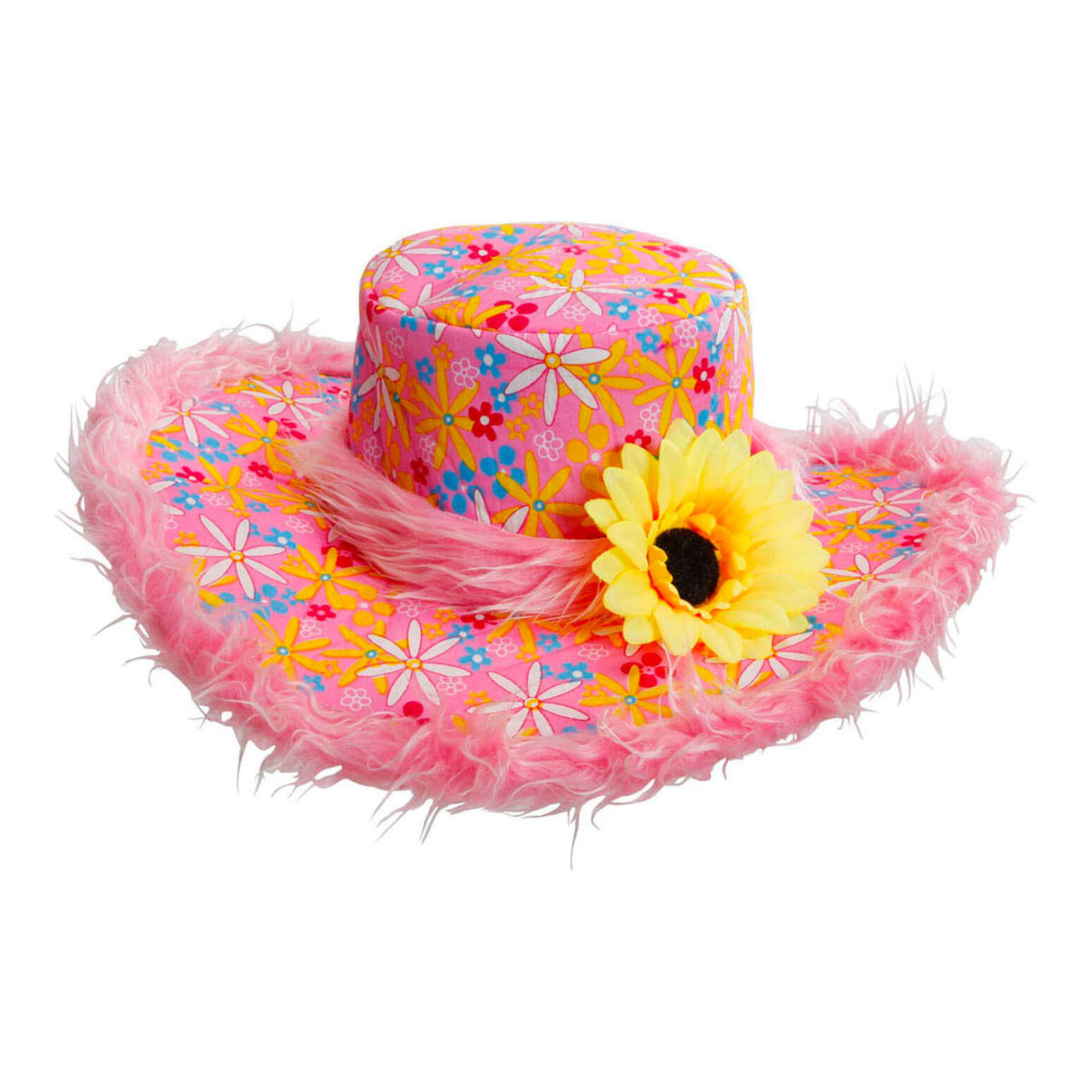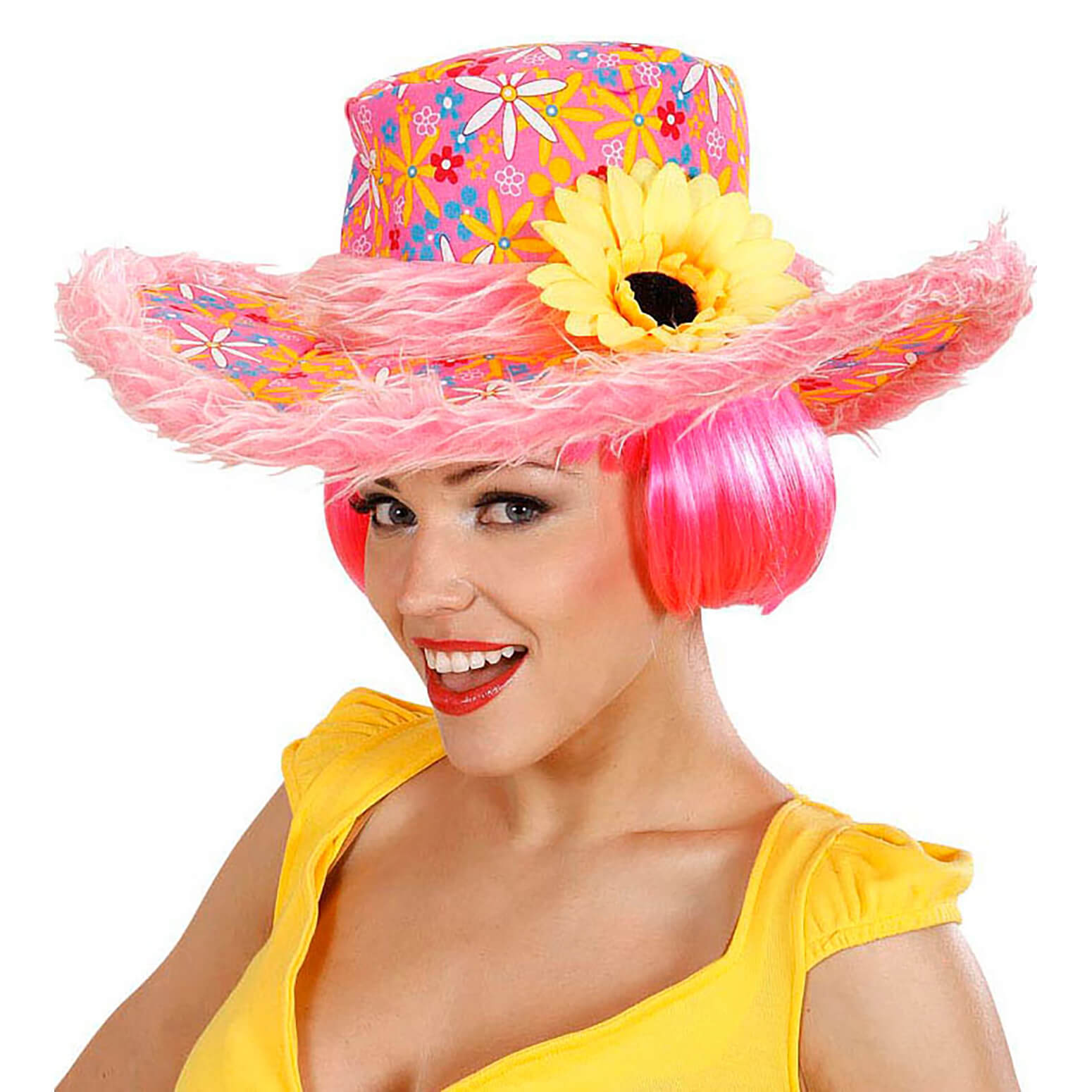 Clown/Hippies Hut mit breiter Krempe Blumen Sonnenblume und Plüschrand pink-bunt – (ARTIKEL/REFERNZ: 8003558259809/WI2598E – Kategorie/Suche: – Hersteller: Widmann S.r.l.)