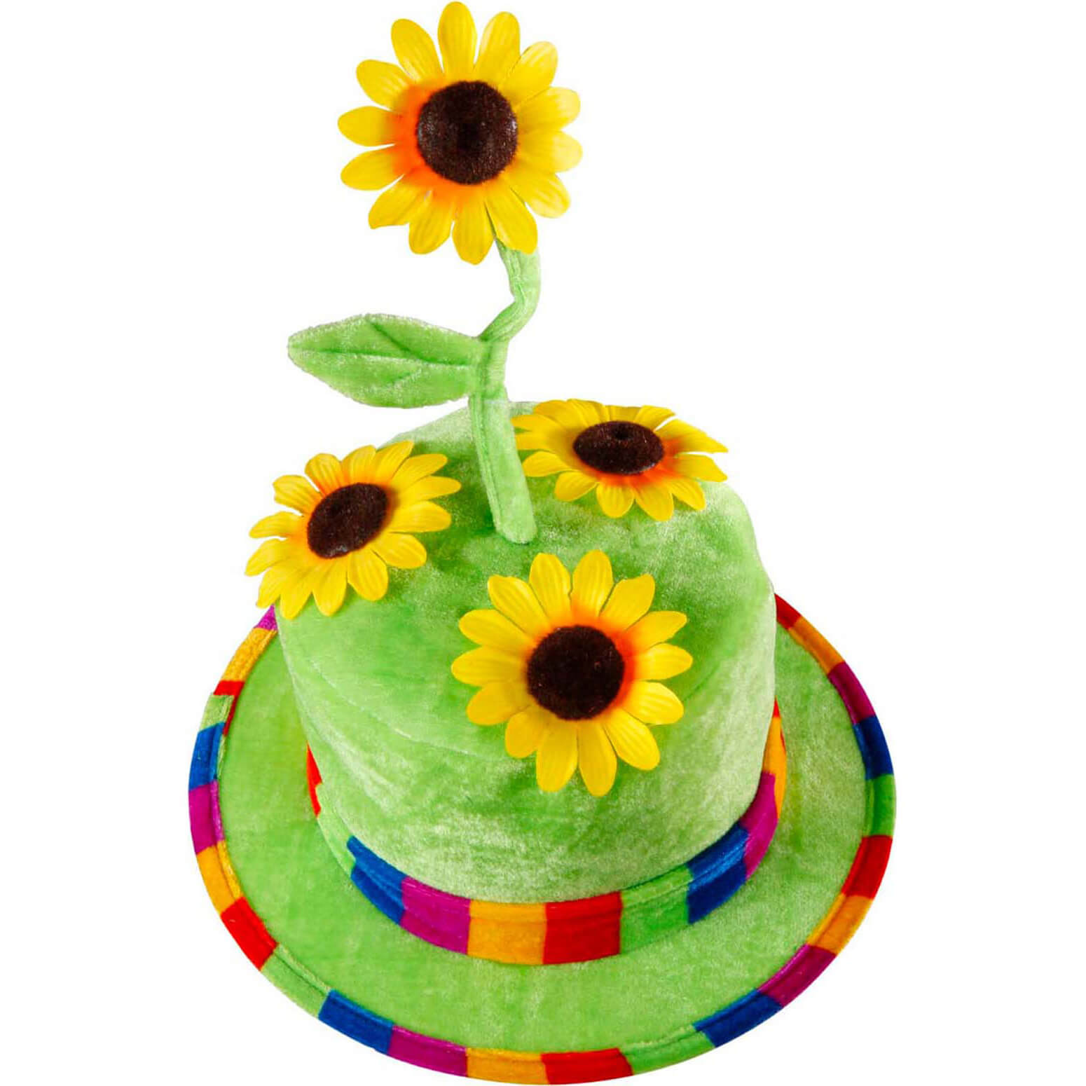 Clown Zylinderhut Textilhut aus Samt mit Sonnenblumen grün-bunt