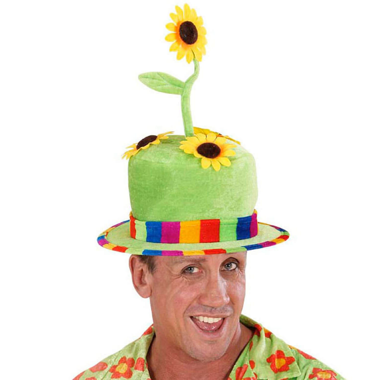 Clown Zylinderhut Textilhut aus Samt mit Sonnenblumen grün-bunt – (ARTIKEL/REFERNZ: 8003558263608/WI2636F – Kategorie/Suche: – Hersteller: Widmann S.r.l.)