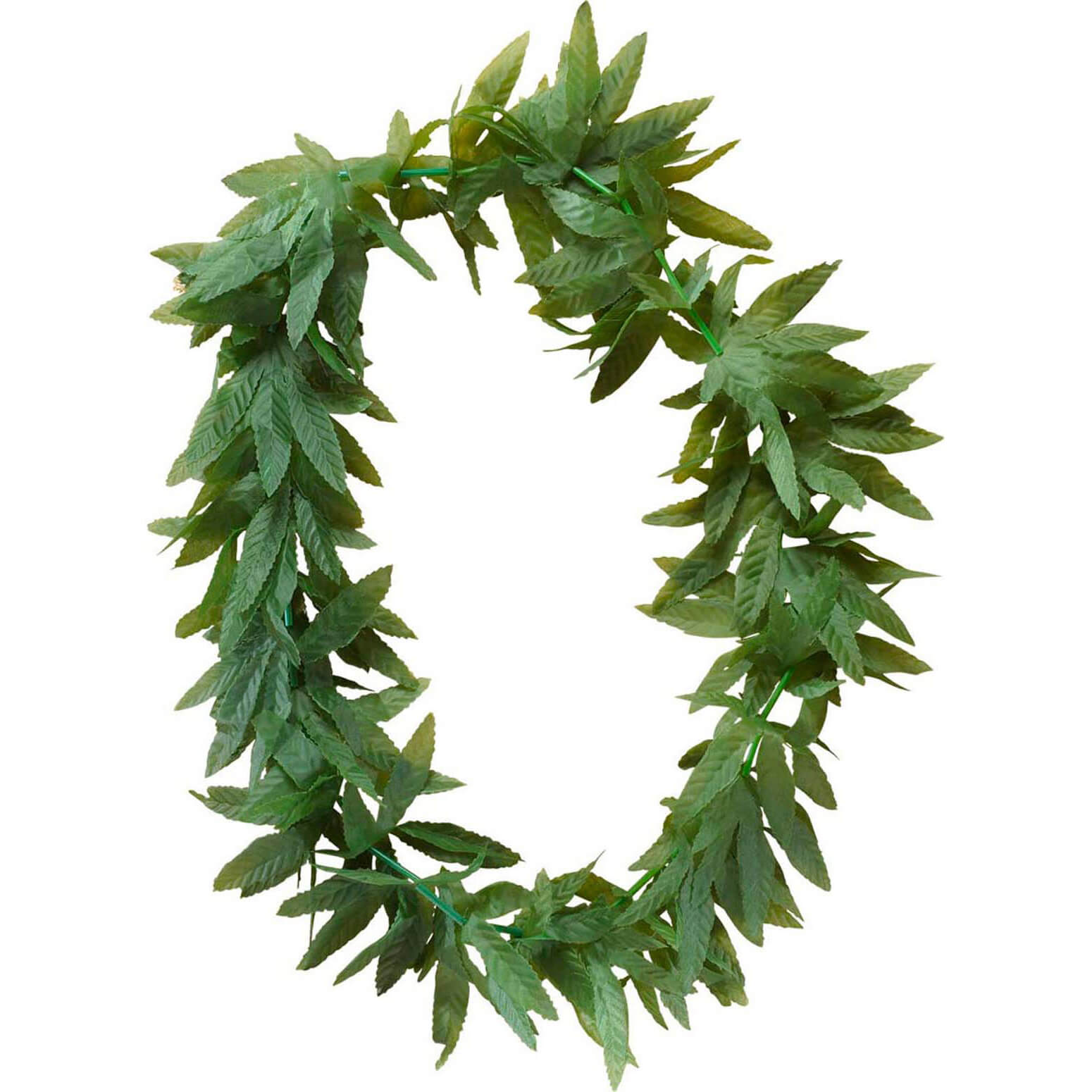 Cannabis Hanfblätter Halskette Hawaiikette Lei aus Textilblättern grün