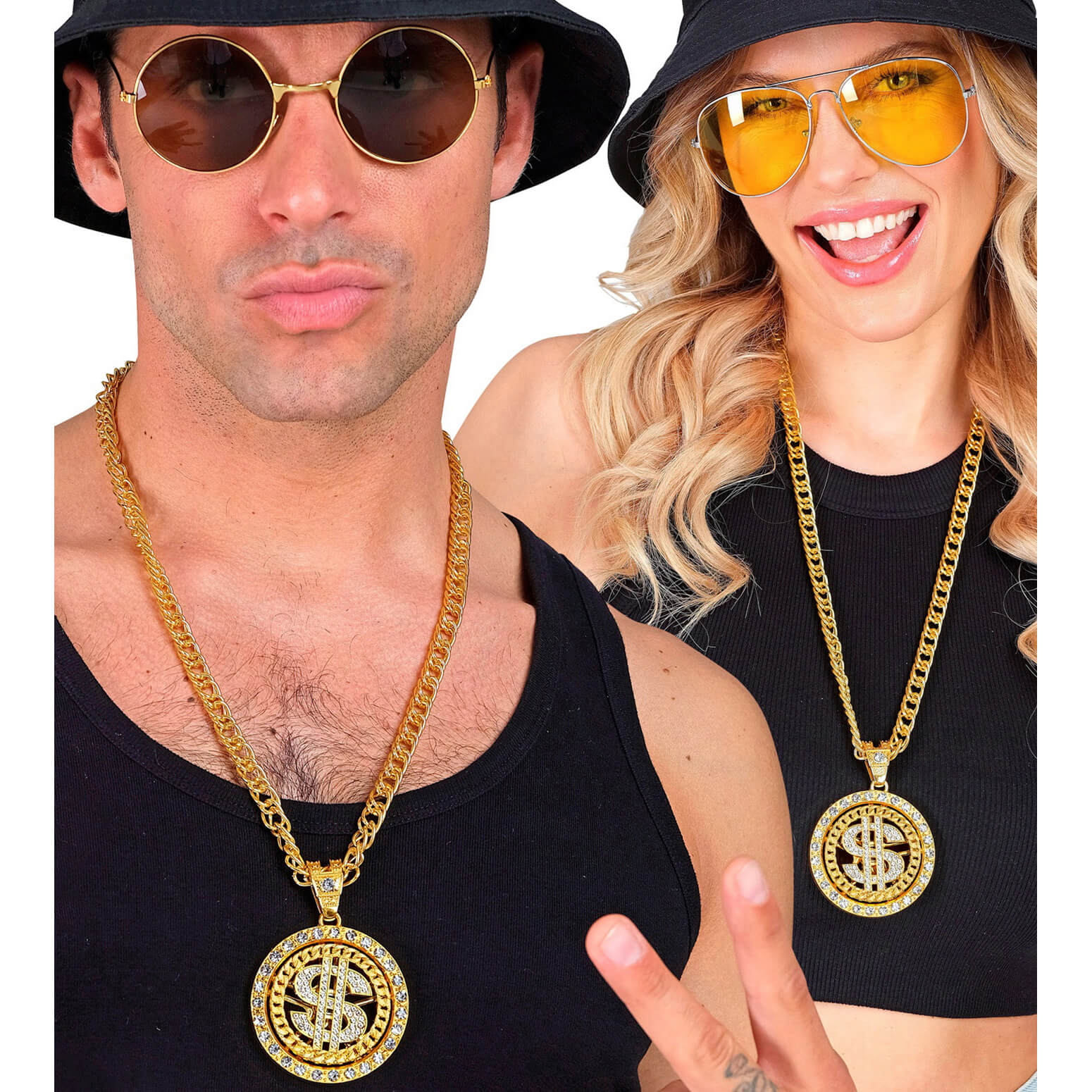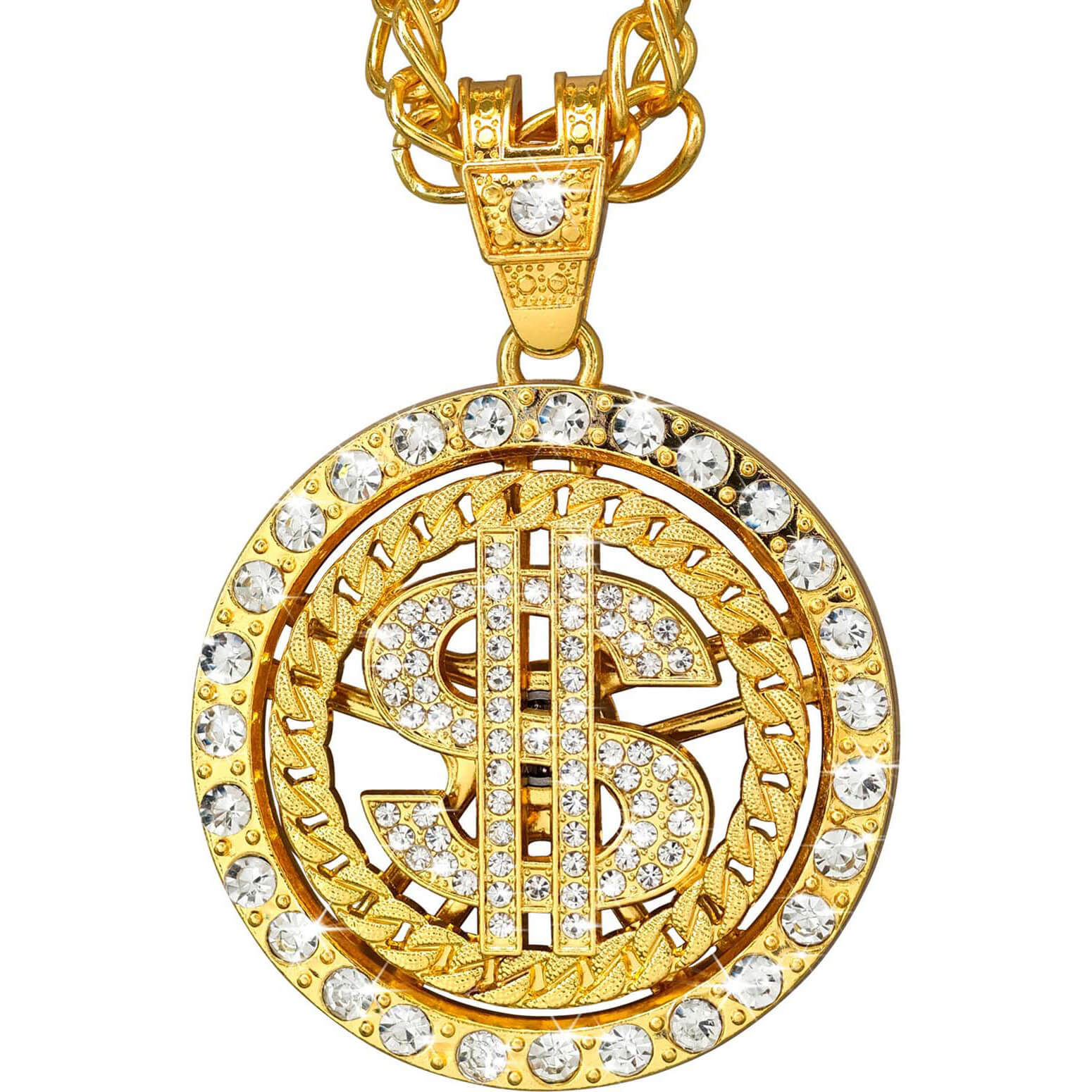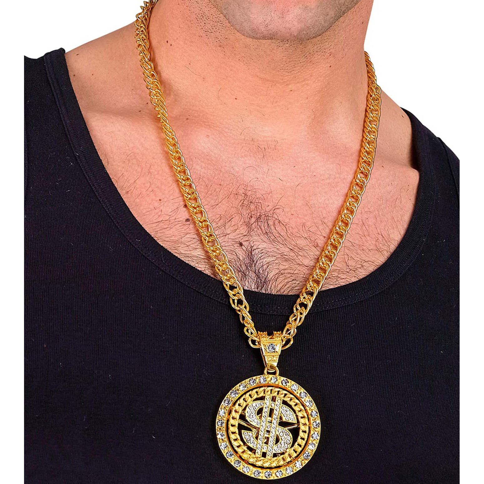 Geld Dollarzeichen Halskette mit Anhänger in Strassoptik edel durchbrochen Deluxe gold-silber – (ARTIKEL/REFERNZ: 8003558281541/WI28154 – Kategorie/Suche: – Hersteller: Widmann S.r.l.)