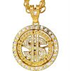 Geld Dollarzeichen Halskette mit Anhänger in Strassoptik edel durchbrochen Deluxe gold-silber