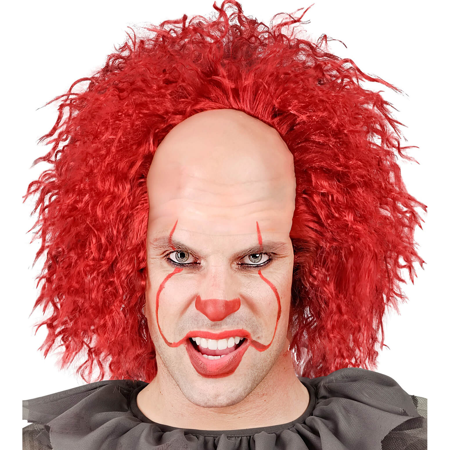 Böser Clown Teilglatze Haarkranz kurz lockig Clown Vintage Killerclown mit Locken strubbelig dunkelrot