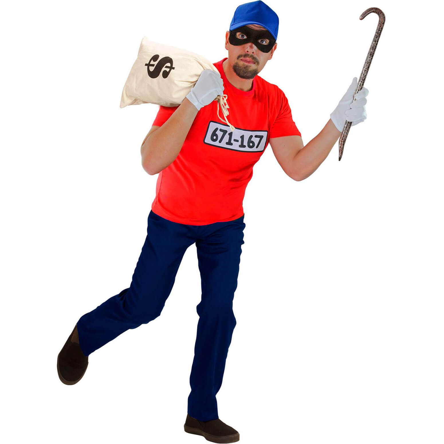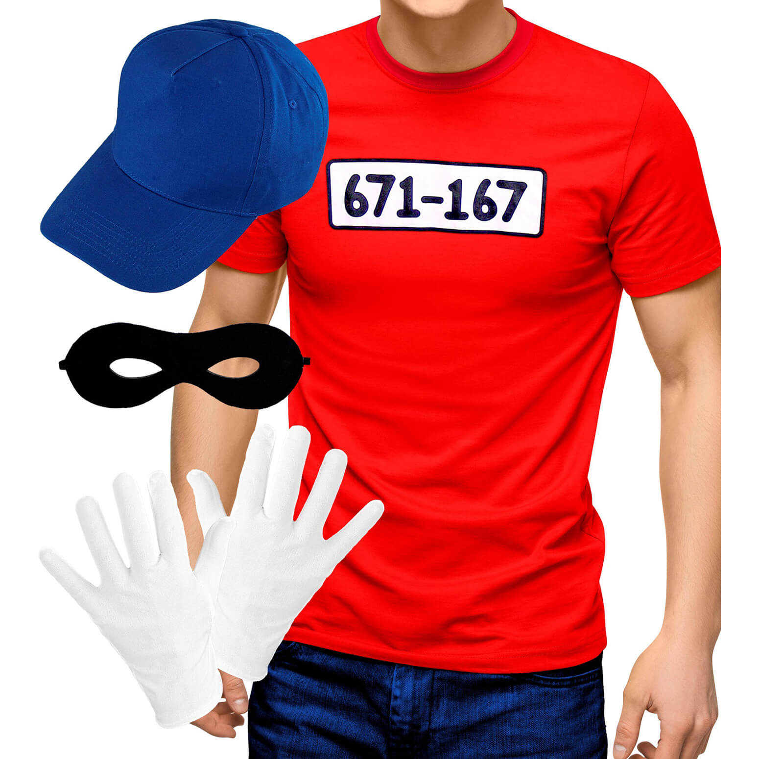 Comic Dieb Kostüm Teile-Set Shirt mit Augenmaske Handschuhen und Mütze rot-blau