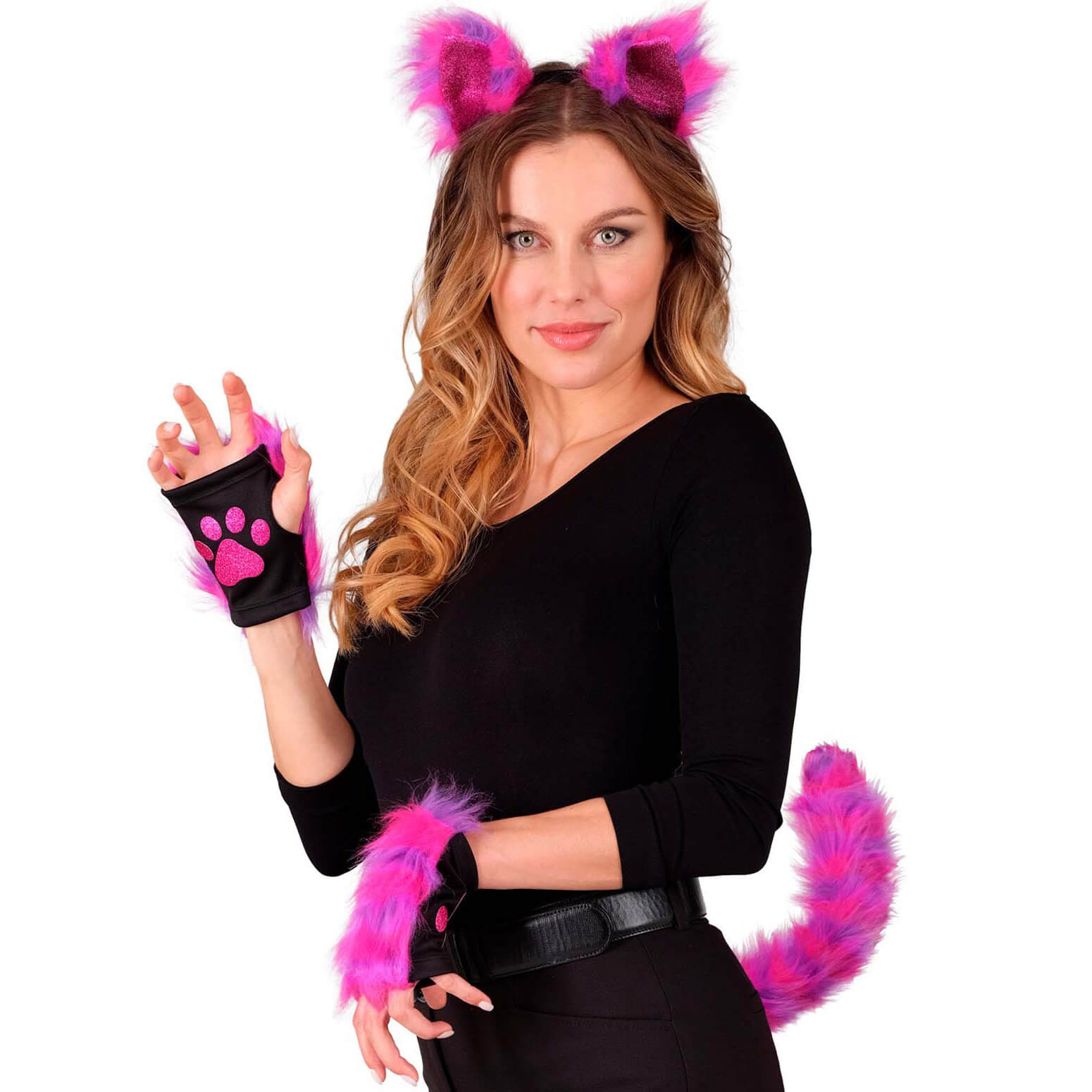 Katze Alice Haarreif mit Ohren+Schwarz+Handschuhe Set fingerlos mit Plüsch COSPLAY NEON KATZE lila mit pink – (ARTIKEL/REFERNZ: 8003558302376/WI30237 – Kategorie/Suche: Disney Alice im Wunderland Grinsekatze – Hersteller: Widmann S.r.l.)