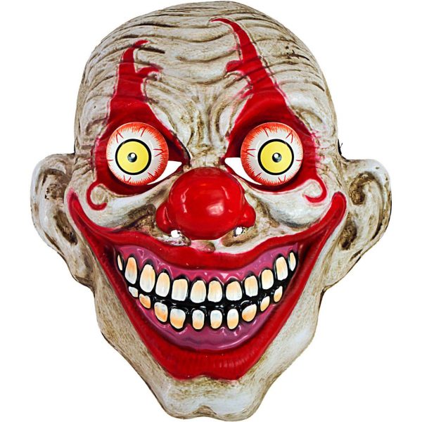 Böser Clown Gesichtsmaske mit Wackelaugen Horror Clownmaske beige-rot