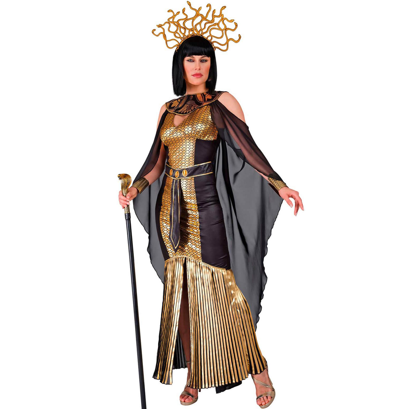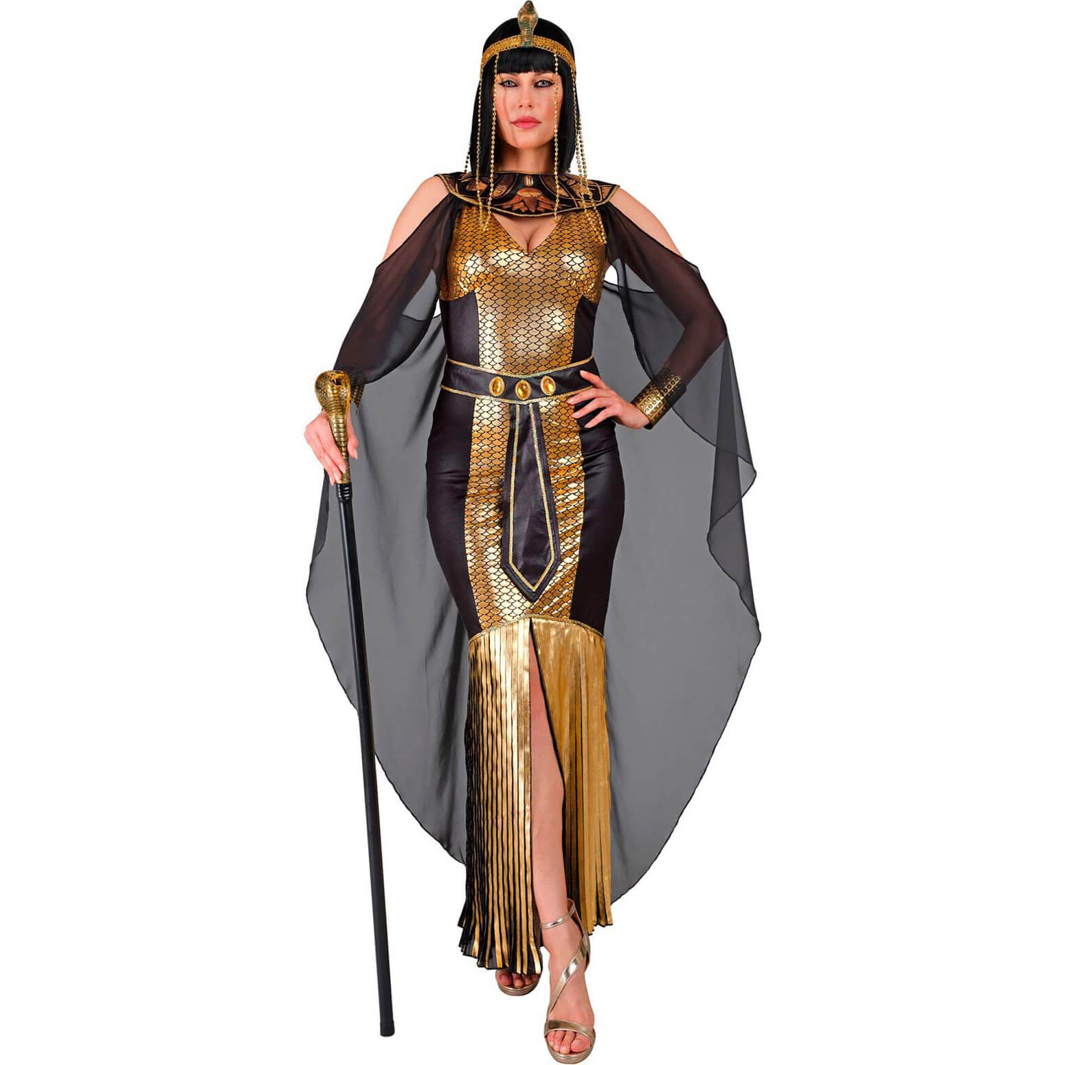 Ägypterin Cleopatra Kostüm Kleid lang Ägyptische Königin mit Schleiercape schwarz-gold – (ARTIKEL/REFERNZ: 8003558303717/WI30371-8003558303724/WI30372-8003558303731/WI30373 – Kategorie/Suche: Asterix und Obelix – Hersteller: Widmann S.r.l.)