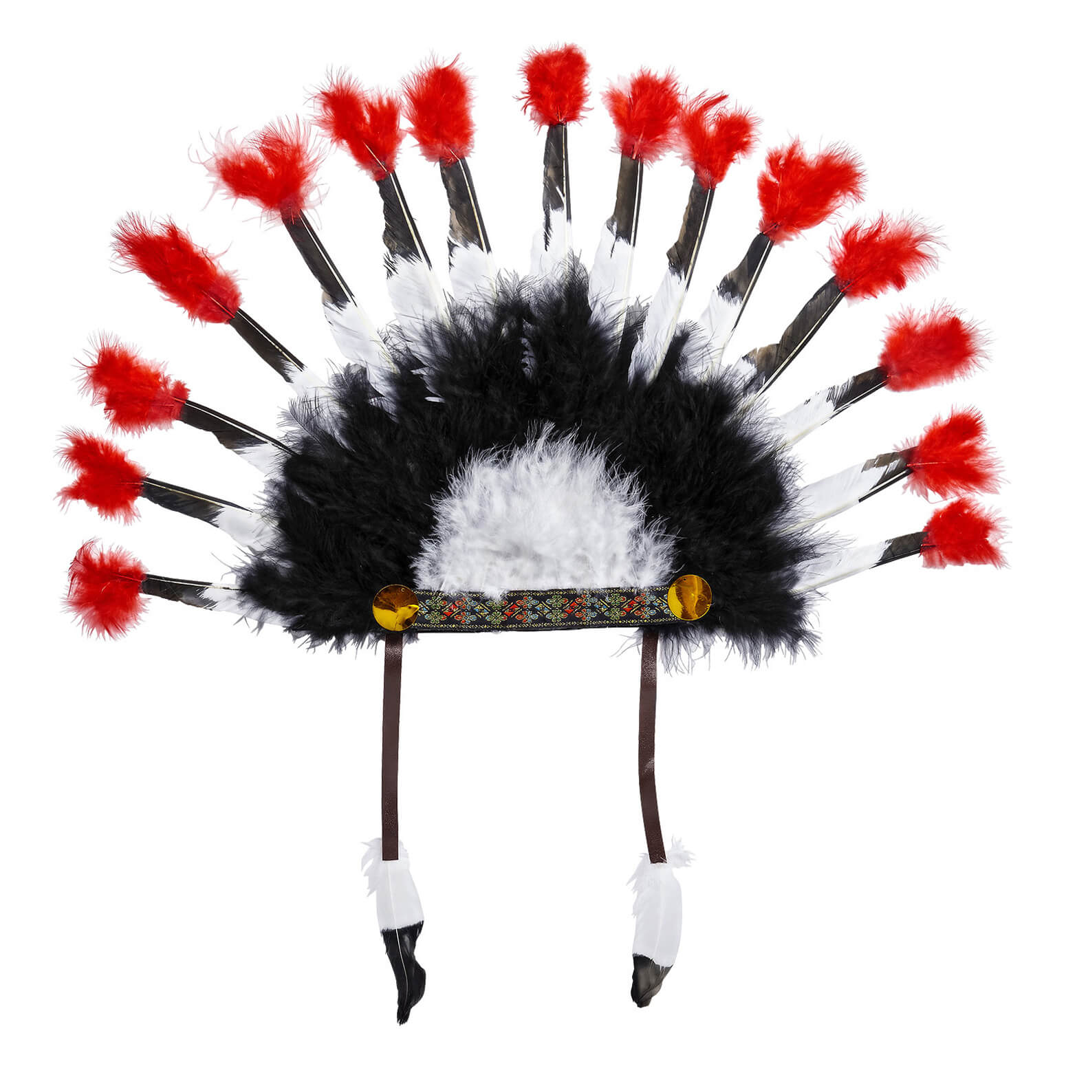 Indianer Federkopfschmuck Häuptling kurz rot-schwarz