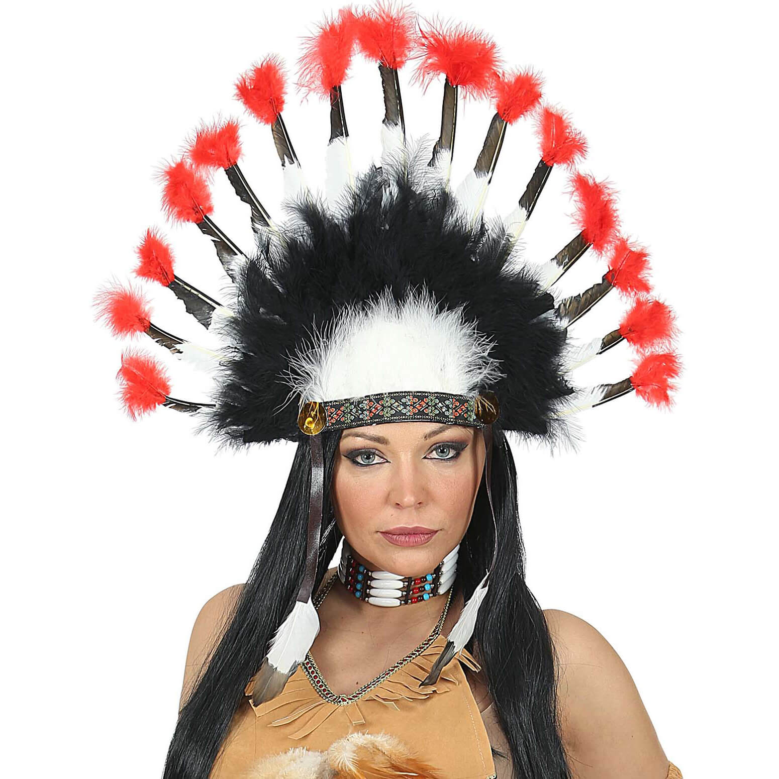 Indianer Federkopfschmuck Häuptling kurz rot-schwarz – (ARTIKEL/REFERNZ: 8003558330454/WI33045 – Kategorie/Suche: – Hersteller: Widmann S.r.l.)
