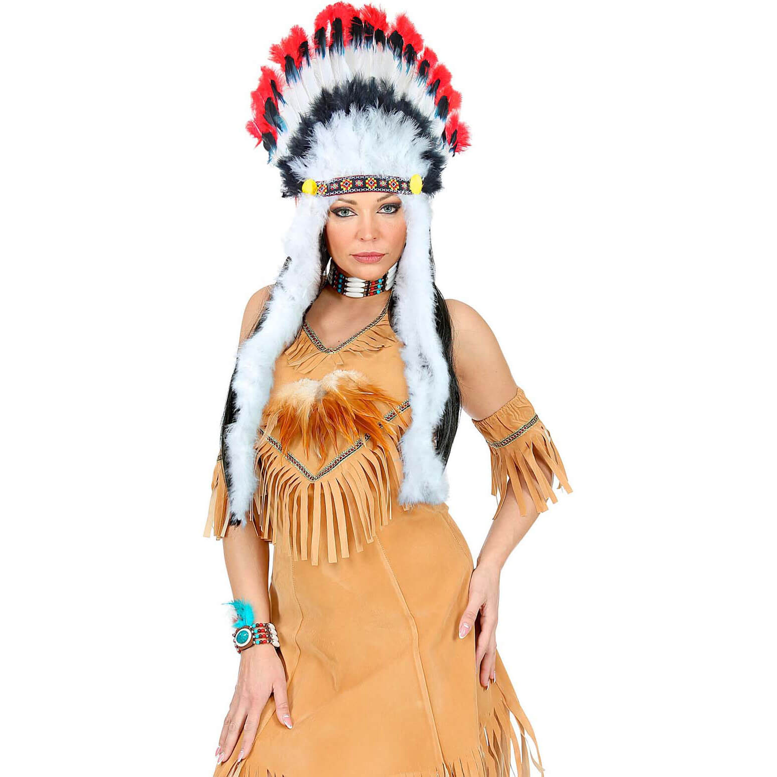 Indianer Federkopfschmuck Häuptling mit langen Marabu-Bändern rot-schwarz – (ARTIKEL/REFERNZ: 8003558330508/WI3305B – Kategorie/Suche: – Hersteller: Widmann S.r.l.)