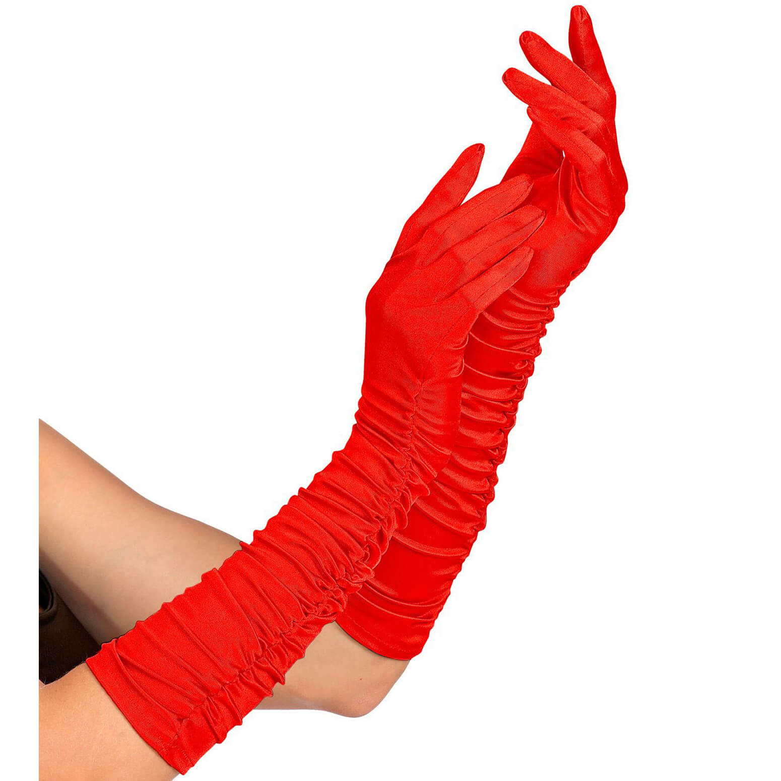 Handschuhe lang gerafft aus Satin mit Elastan 44cm einfarbig rot – (ARTIKEL/REFERNZ: 8003558343133/WI34313 – Kategorie/Suche: – Hersteller: Widmann S.r.l.)
