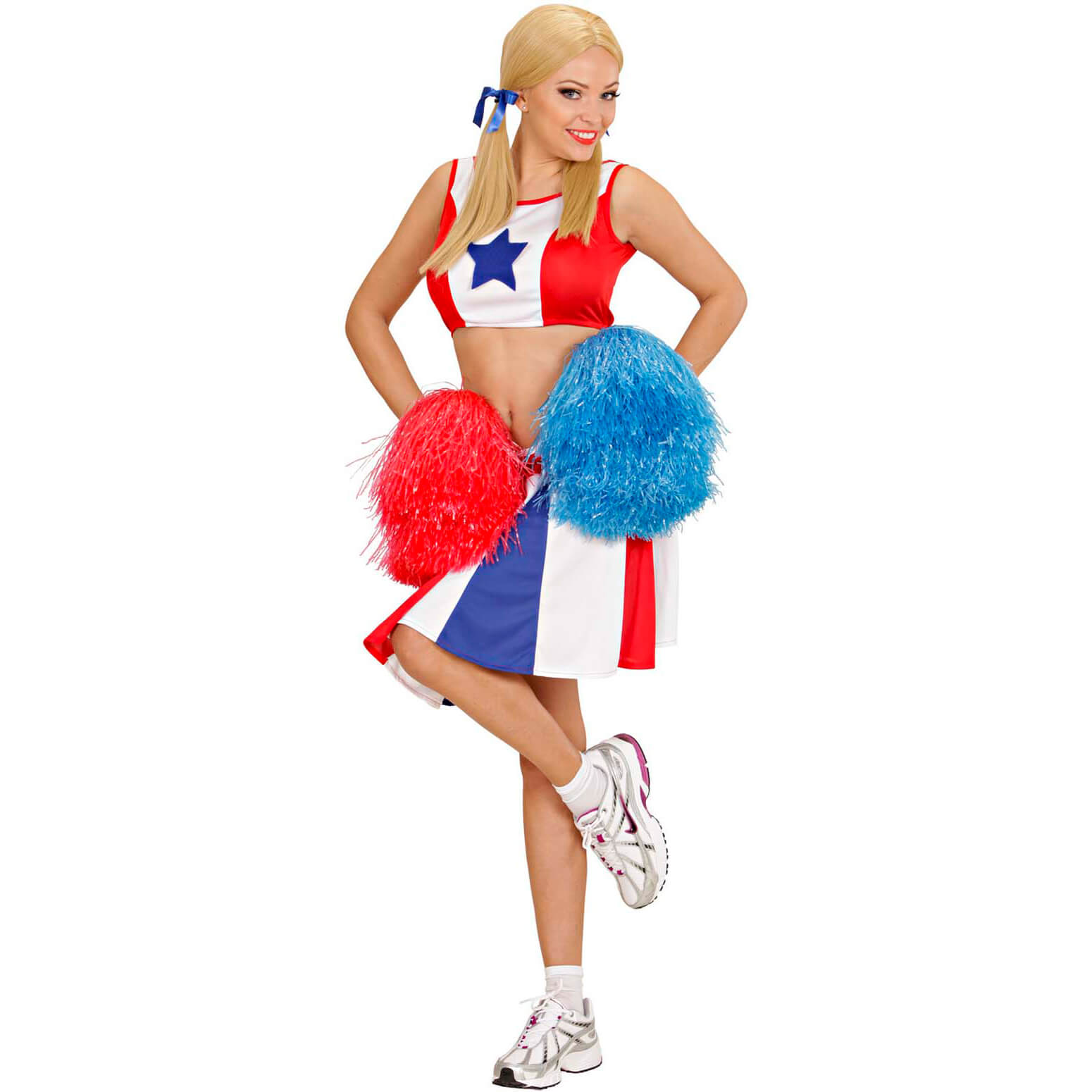 Cheerleaderin Kostüm Kleid kurz bauchfrei mit Rock weiß-blau-rot – (ARTIKEL/REFERNZ: 8003558349999/WI34999-8003558349913/WI34991 – Kategorie/Suche: – Hersteller: Widmann S.r.l.)