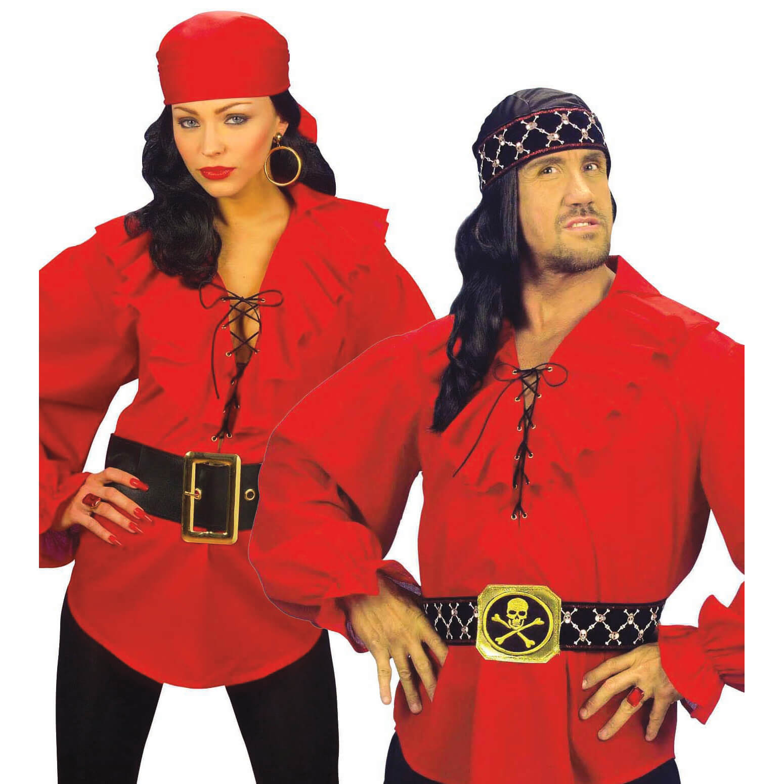 Mittelalterliches / Piraten Rüschenhemd Rüschenbluse geschnürt Classic rot