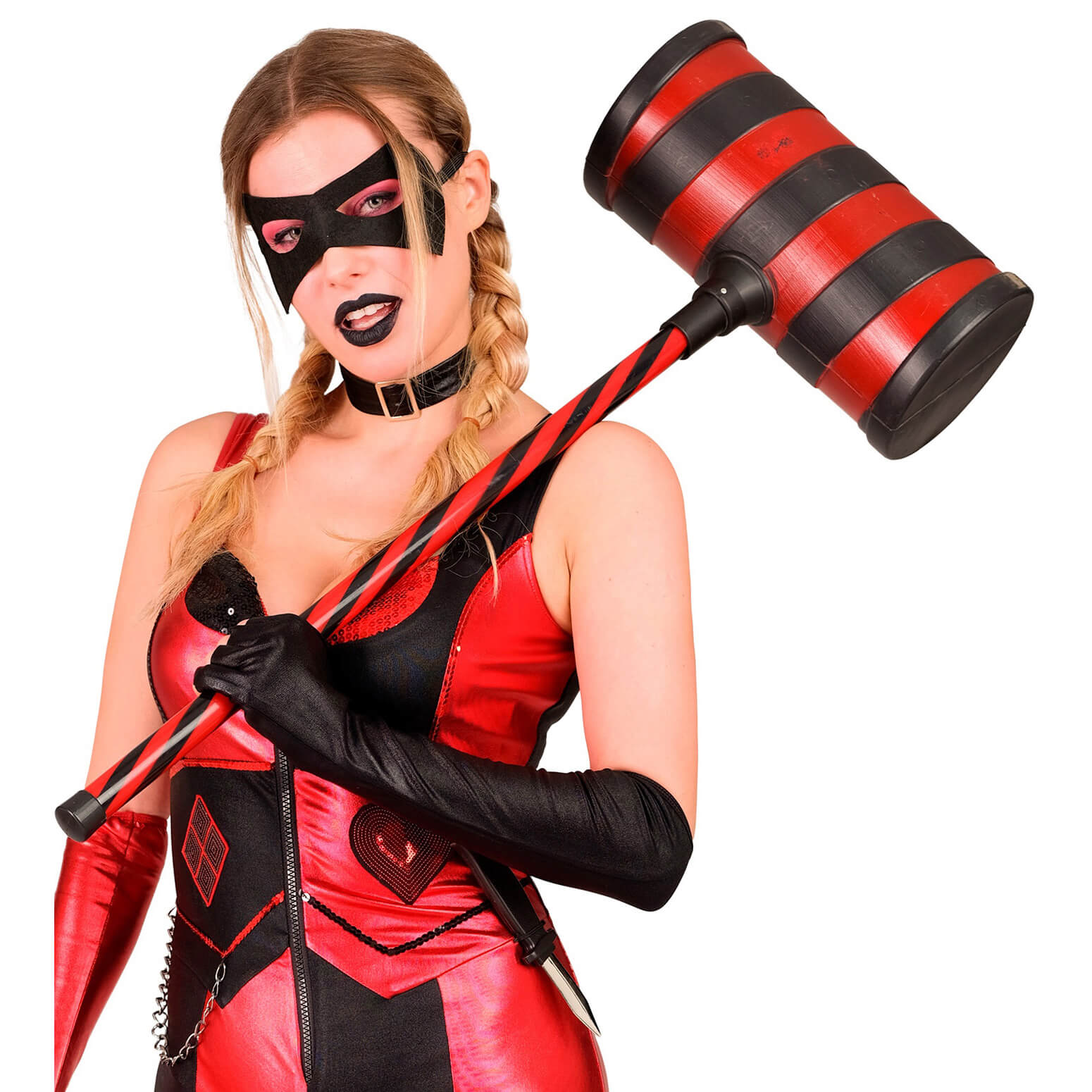Superheldin Jokergirl Hammer Clownshammer Riesenhammer 78cm rot-schwarz