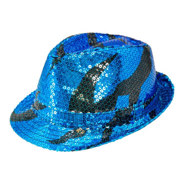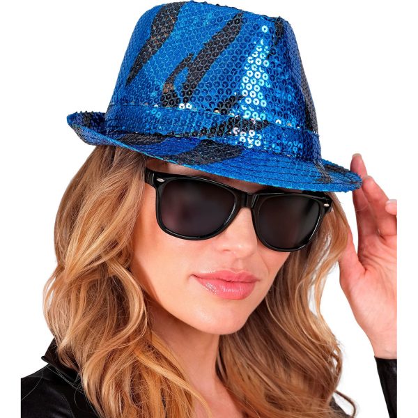Superstars Pimp Waves Trilbyhut schmale Krempe mit schwarzen Streifen Pailletten türkis