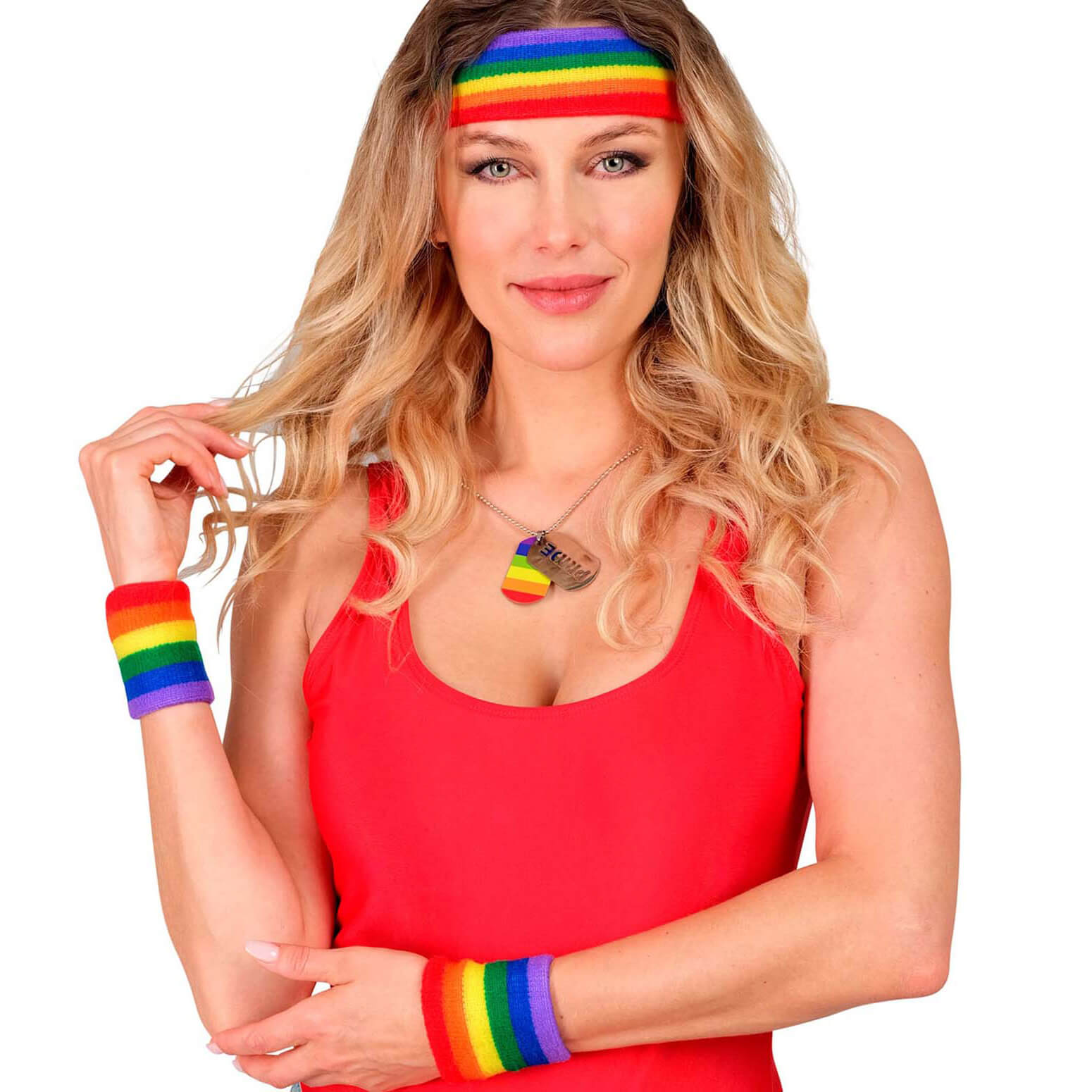 80er Jahre Aerobic/Regenbogen Schweißband Set Stirnband+Handgelenkschweißbänder bunt – (ARTIKEL/REFERNZ: 8003558426201/WI42620 – Kategorie/Suche: – Hersteller: Widmann S.r.l.)