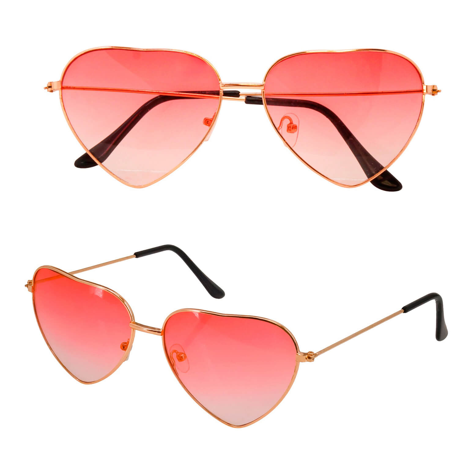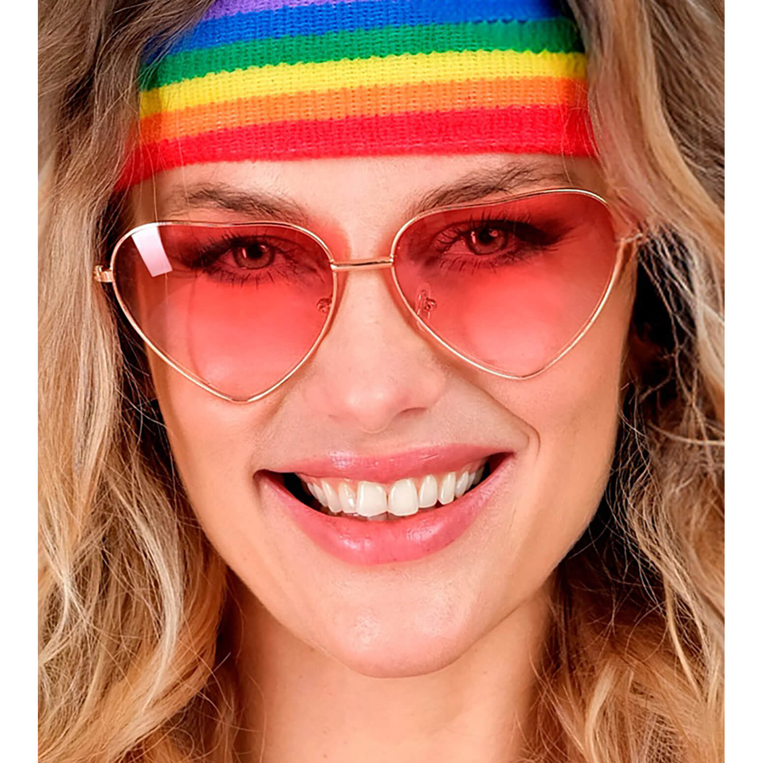 Herzen / Hippies Motivbrille mit Farbgläsern gold-rot