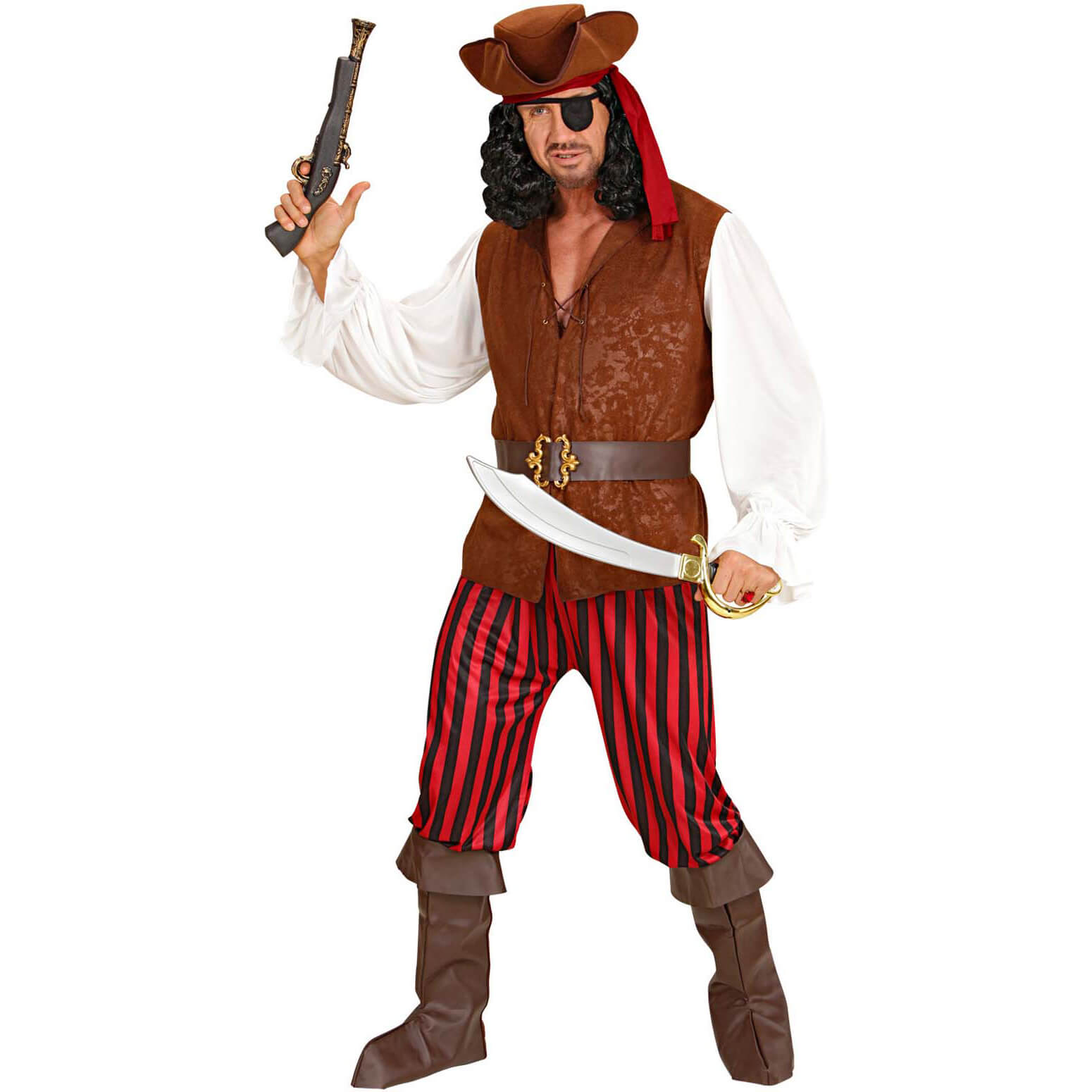 Pirat Kostüm Anzug gestreift mit Veloursleder Optik braun-rot – (ARTIKEL/REFERNZ: 8003558443918/WI44391-8003558443925/WI44392-8003558443932/WI44393-8003558568604/WI5686P-8003558424504/WI4245L-8003558443994/WI44399 – Kategorie/Suche: – Hersteller: Widmann S.r.l.)
