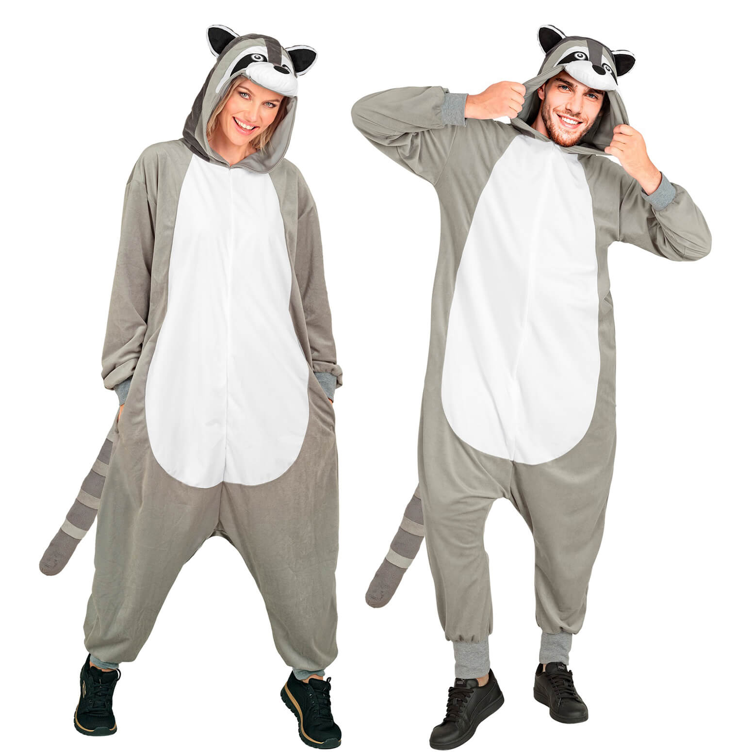 Bär Waschbär Plüschkostüm Overall Plüsch Onesie aus kurzem Plüsch Velours grau-weiß