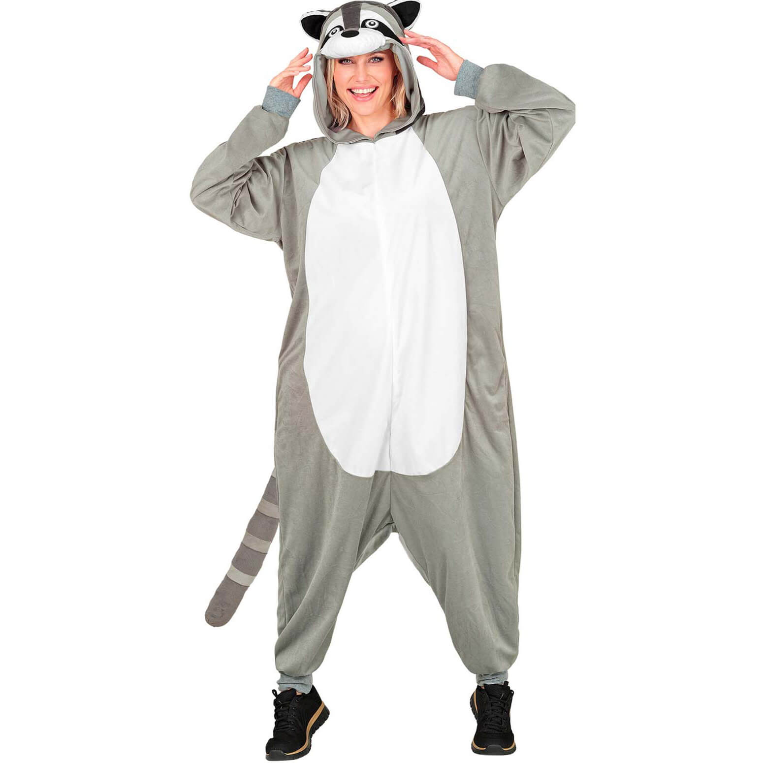 Bär Waschbär Plüschkostüm Overall Plüsch Onesie aus kurzem Plüsch Velours grau-weiß – (ARTIKEL/REFERNZ: 8003558458479/WI45847-8003558458486/WI45848-8003558458493/WI45849 – Kategorie/Suche: – Hersteller: Widmann S.r.l.)