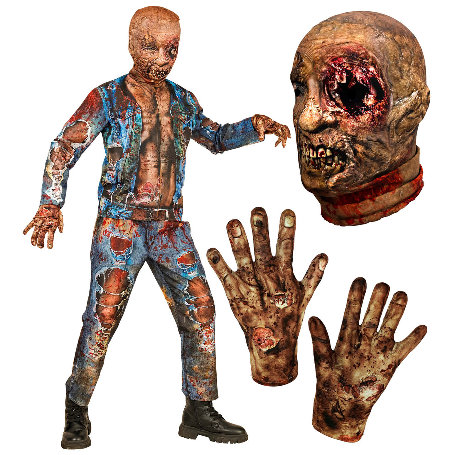 Zombie blutig Kinderkostüm Anzug FAST KOSTUME Jogginganzug mit Handschuhen und Stoffmaske blau-rot