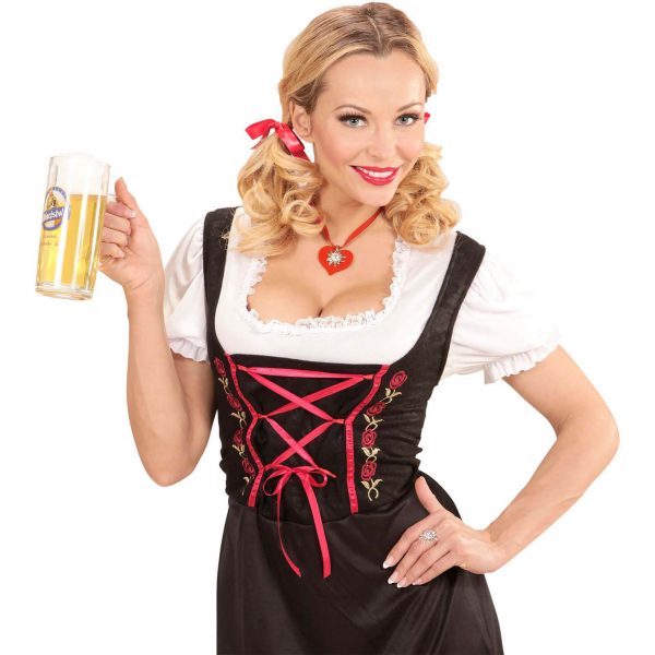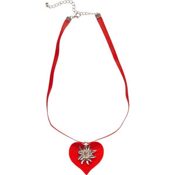 Trachten Halsband mit Anhänger Textilband mit Herz aus Filz und Edelweiß rot-silber – (ARTIKEL/REFERNZ: 8003558467303/WI46730 – Kategorie/Suche: Oktoberfest – Hersteller: Widmann S.r.l.)