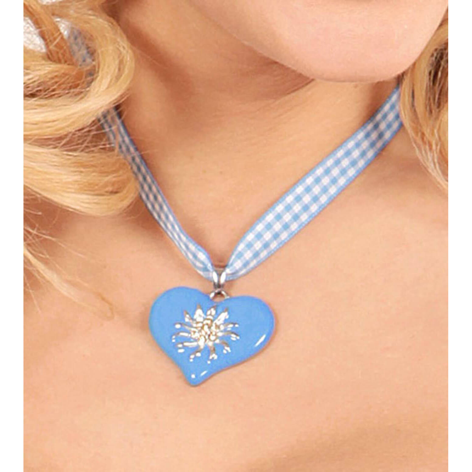 Trachten Halsband mit Anhänger Karoband mit glänzendem Herz und Edelweiß blau-silber – (ARTIKEL/REFERNZ: 8003558467327/WI46732 – Kategorie/Suche: Oktoberfest – Hersteller: Widmann S.r.l.)