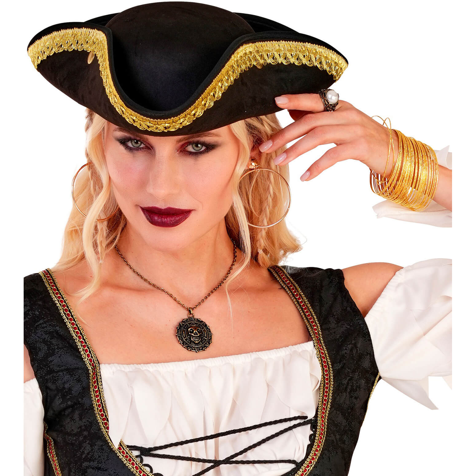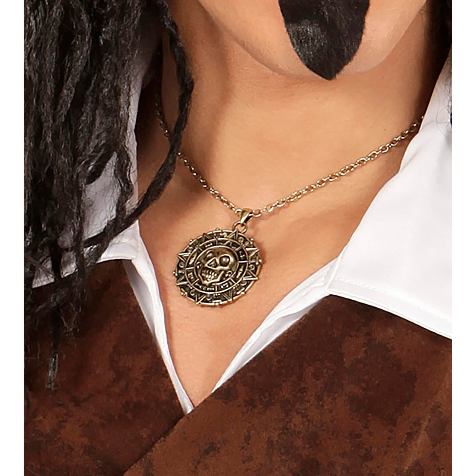 Pirat der Karibik Halskette mit Anhänger Schädel Kompass in altgold gold – (ARTIKEL/REFERNZ: 8003558467471/WI46747 – Kategorie/Suche: Disney Captain Jack Sparrow Fluch der Karibik – Hersteller: Widmann S.r.l.)