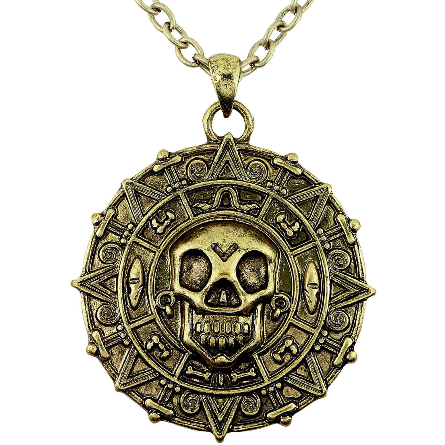 Pirat der Karibik Halskette mit Anhänger Schädel Kompass in altgold gold