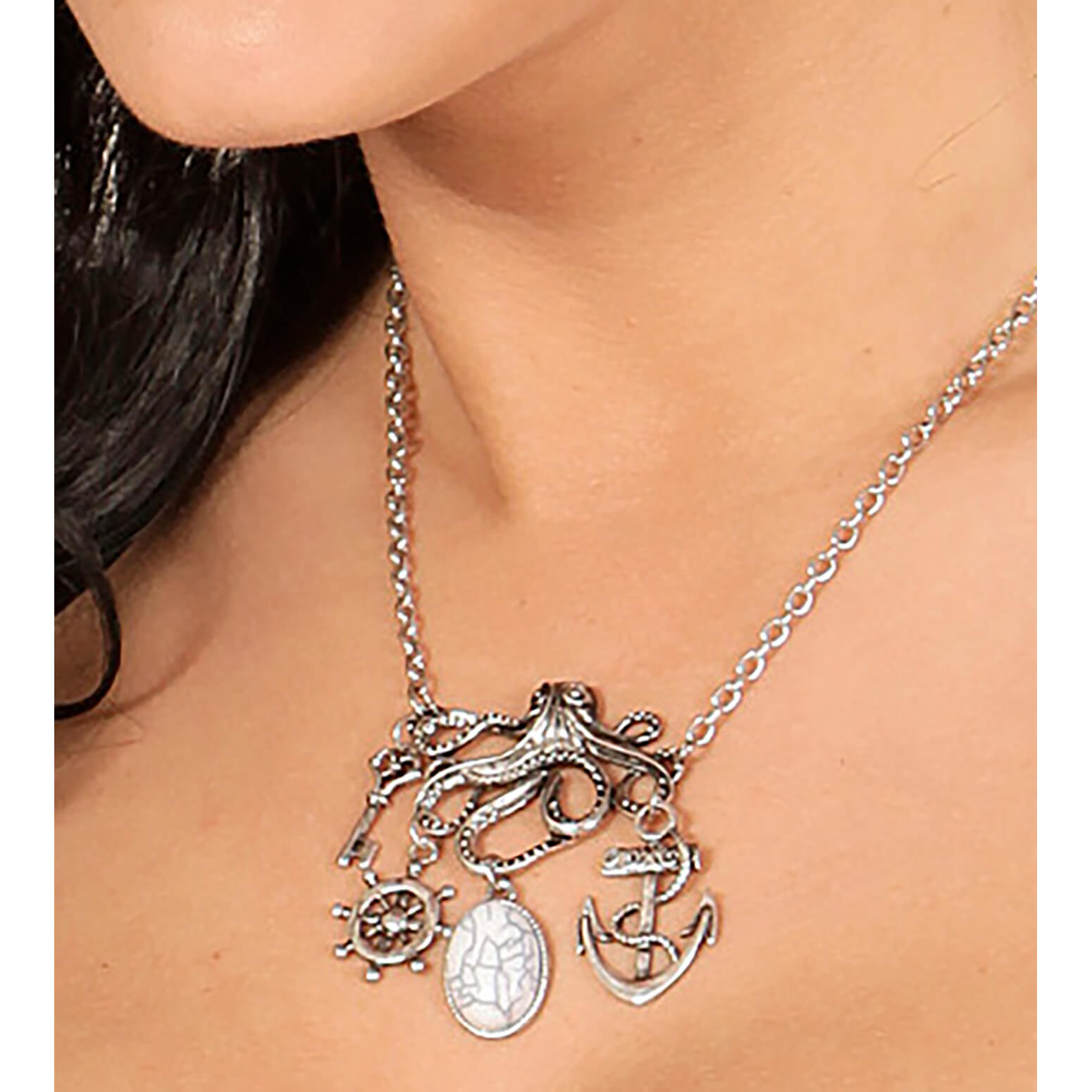 Maritimes/Piraten Halskette mit Anhänger Steuerrad Anker Krake Matrosen Talismane in Altsilber silber – (ARTIKEL/REFERNZ: 8003558467495/WI46749 – Kategorie/Suche: – Hersteller: Widmann S.r.l.)